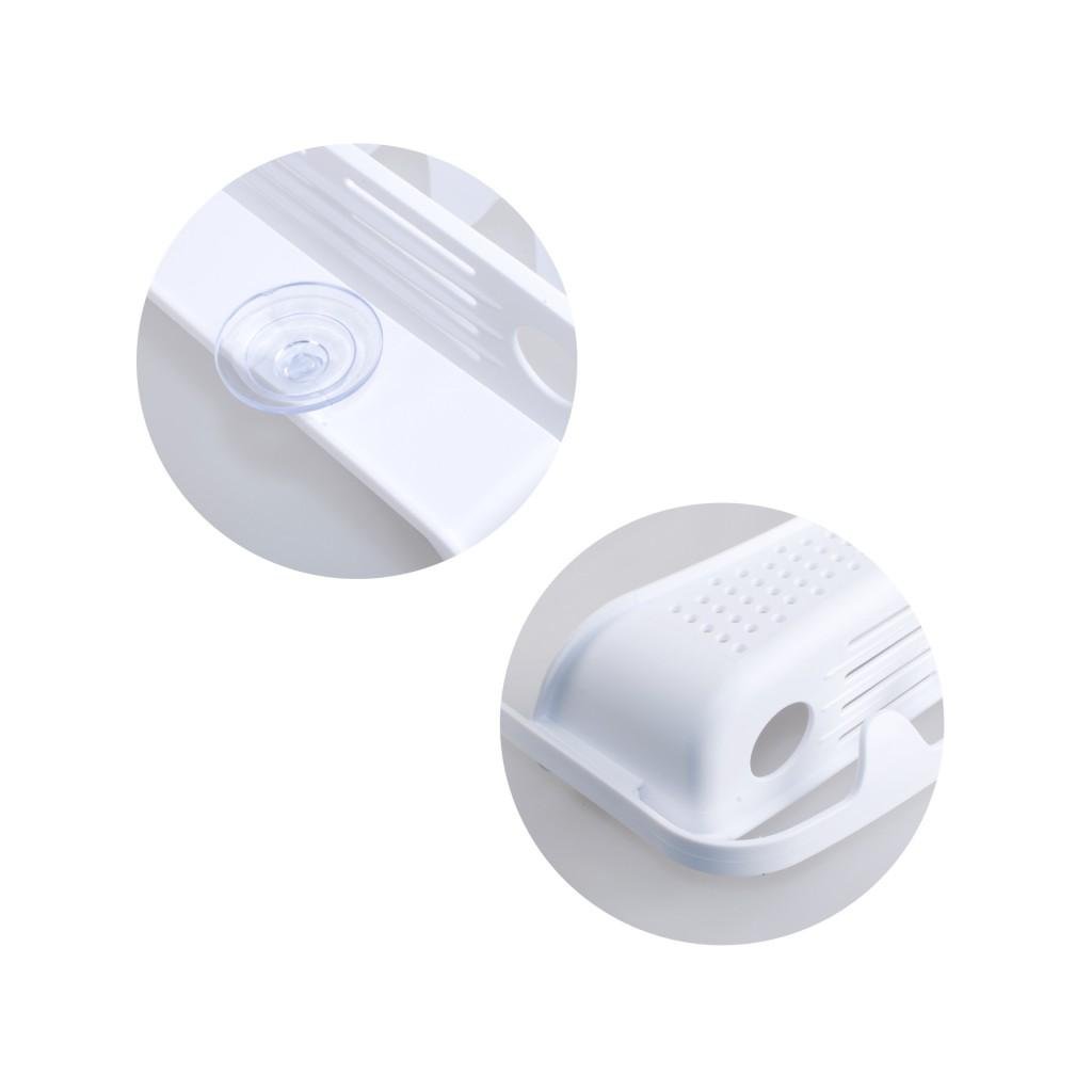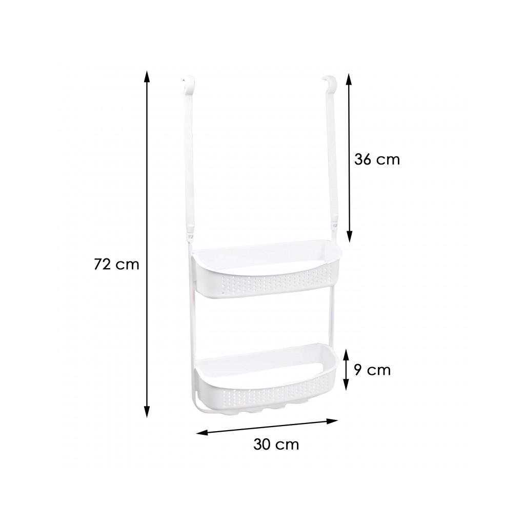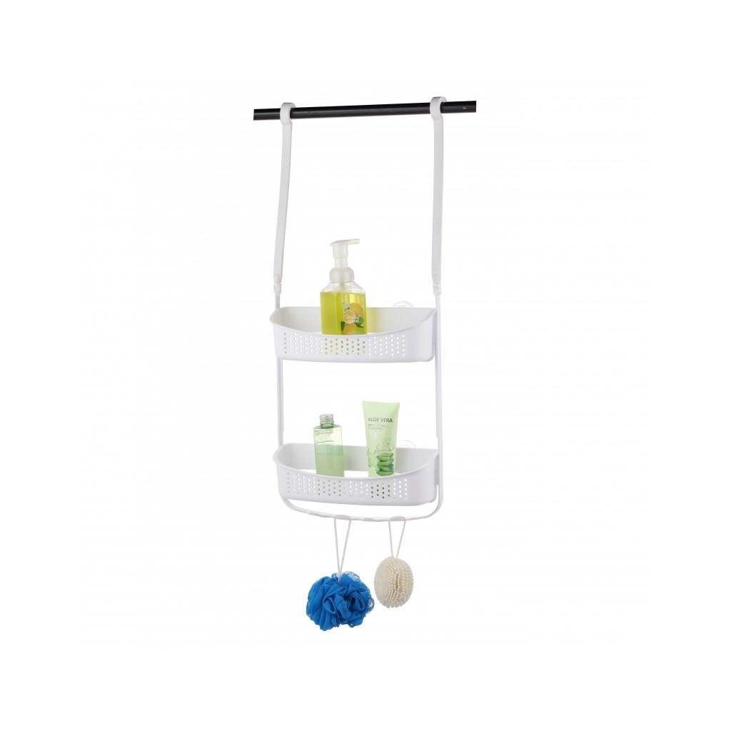 Fehér zuhanypolc, amely sok helyet takarít meg. Két profilozott műanyag kosárral és négy kampóval rendelkezik, amelyek jelentősen növelik a képességeit. A polcok lyukakkal vannak ellátva, amelyek biztosítják a víz szabad csepegését. A rugalmas gumipántoknak köszönhetően a rendező az esőzuhany karjára vagy a kabinajtó felső szélére akasztható. A rendszerező 4 tapadókoronggal rendelkezik, hogy stabilan tartsa, és nem billeg egyik oldalról a másikra, ha üvegre vagy csempére rögzítik. A tapadókorongok könnyen eltávolíthatók. Tökéletesen elfér benne minden szükséges fürdőszobai kiegészítő. Olyan emberek számára készült, akik értékelik a szilárd kidolgozást és a praktikumságot.