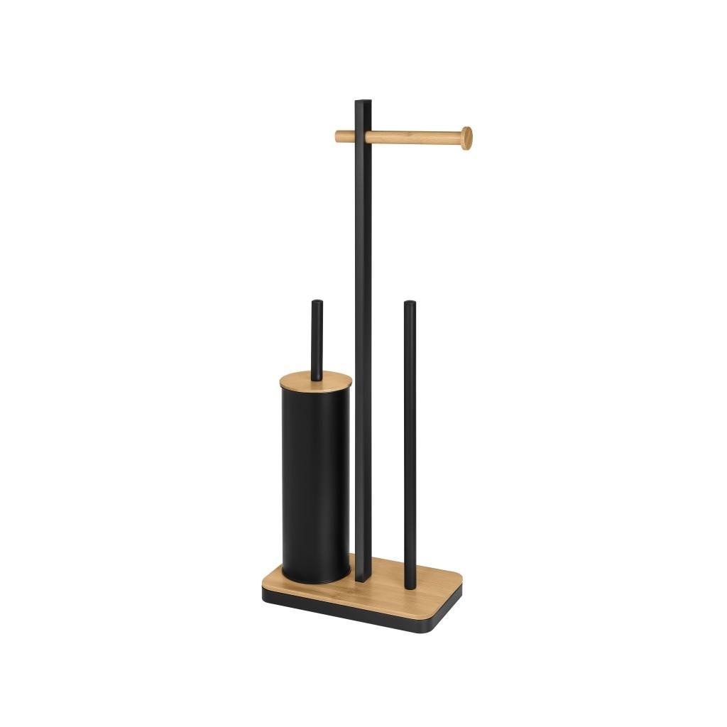 Erga Yami, WC-papír tartó WC kefével és papíradagolóval, fekete-barna, ERG-YKA-P.YAMI-BLK