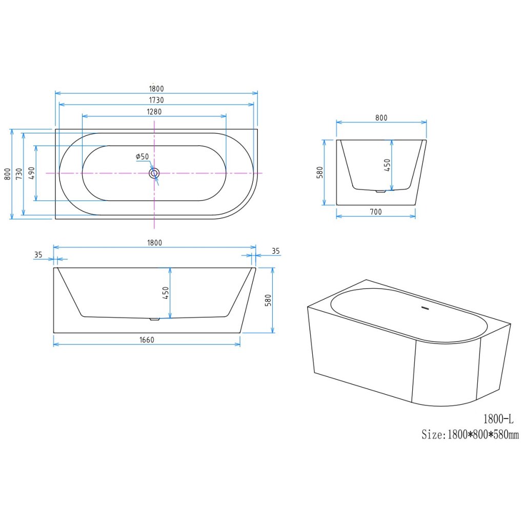 Erga Zara, sarok szabadon álló kád 180x80 cm + leeresztő csavar, bal, fehér fényes, ERG-Zara-180080L-WH-WH