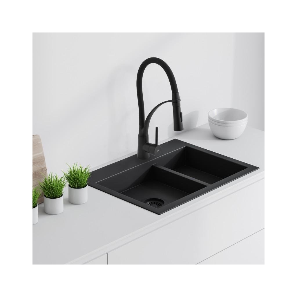 Erga Zefir, magas mosogató csaptelep rugalmas karral h-430, fekete matt, ERG-YKA-BZ.ZEFIR-BLK