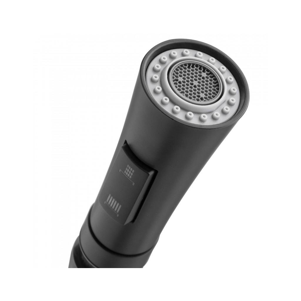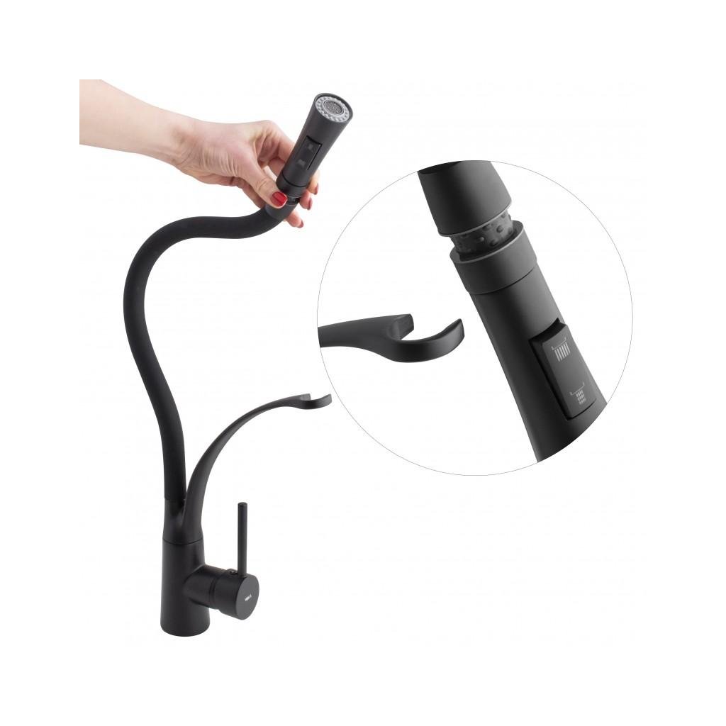 A kifolyó fúvókával rendelkezik normál patak és zuhany üzemmóddal - ami nagy kényelmet biztosít a napi használat során - akár nagy dupla tálas mosogató mellett is. Ezenkívül a fúvóka levegőztető elemmel - egy levegőztetővel - van felszerelve, amely akár 40%-kal csökkenti a vízfogyasztást.