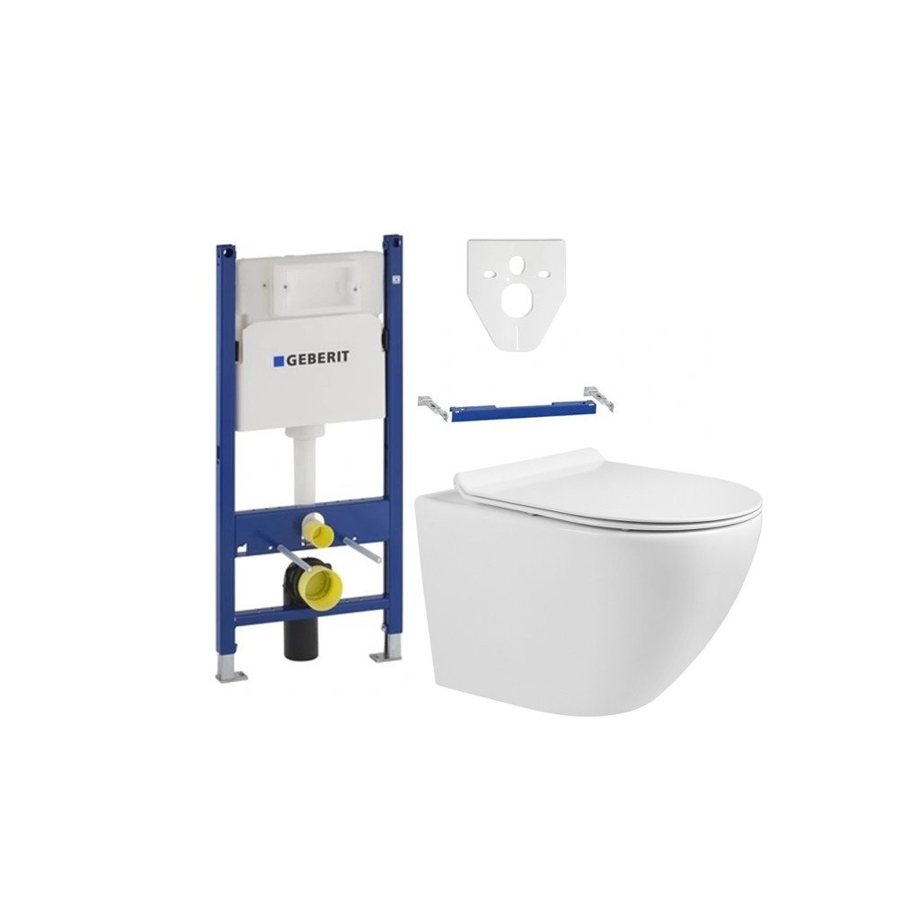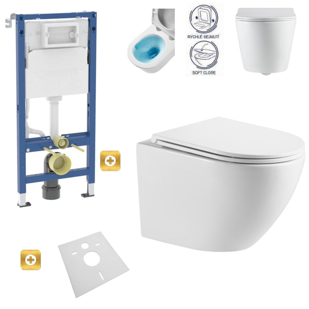 Akasztós készlet GEBERIT Duofix Basic + WC LENA RIMLESS 48 x 36 cm + lassan leejtő WC ülőke Slim