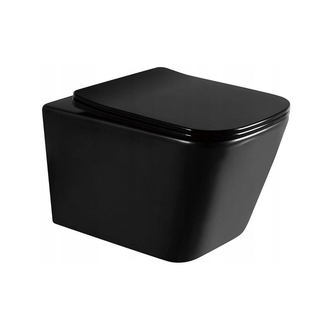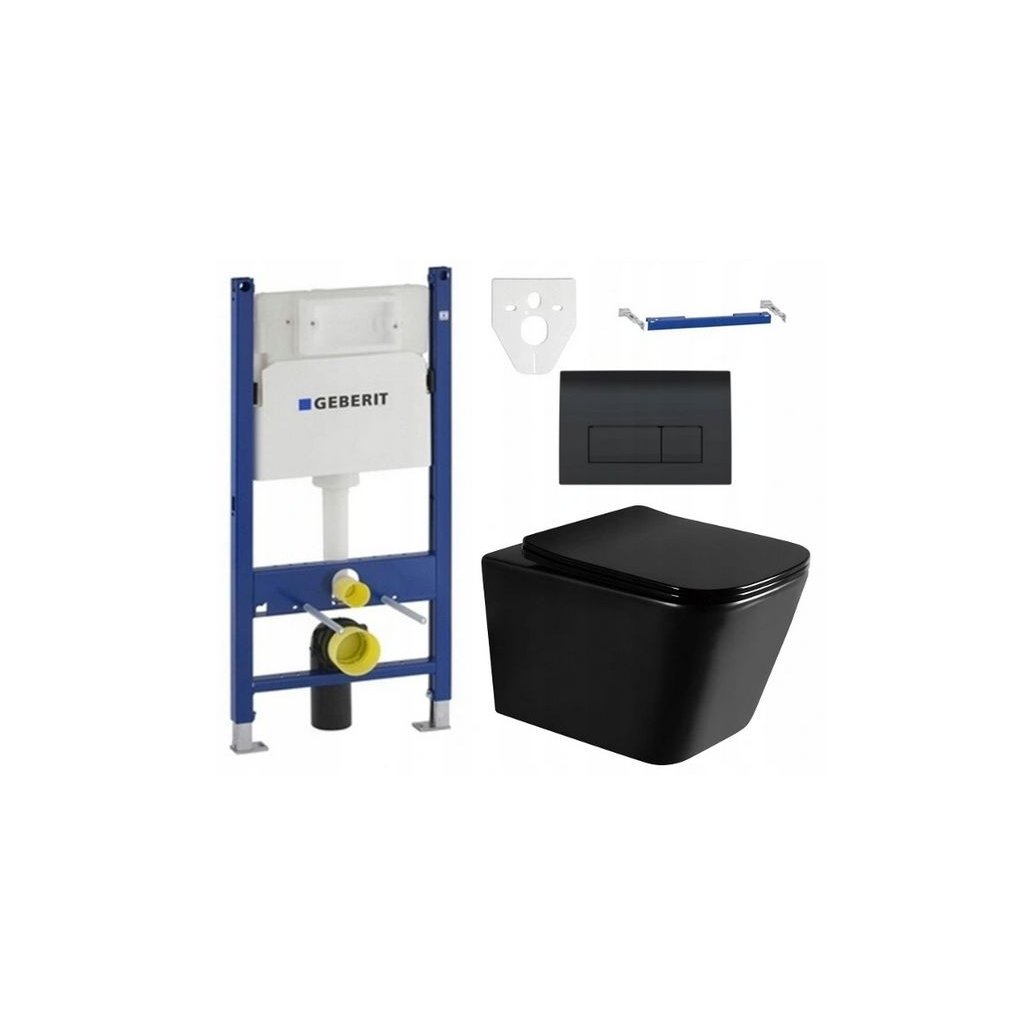 Akasztókészlet GEBERIT Duofix Basic + WC TEO RIMLESS 51 x 35 cm + lassan eső deszka Slim, fekete, 3385XX85 + 39060185