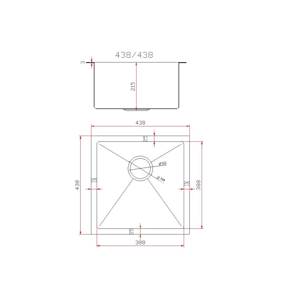 Gamma, 1 rekeszes acél mosogató 438x438x215 mm, csiszolt acél, GMA-S4444-CH
