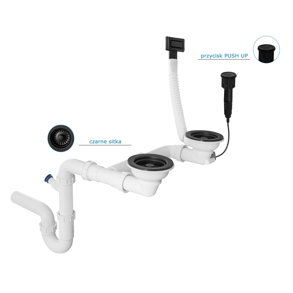 Gamma, 2-kamrás automata szifon gránit mosogatóhoz négyzetes túlfolyóval, matt fekete, GMA-1AP21ZBKLB