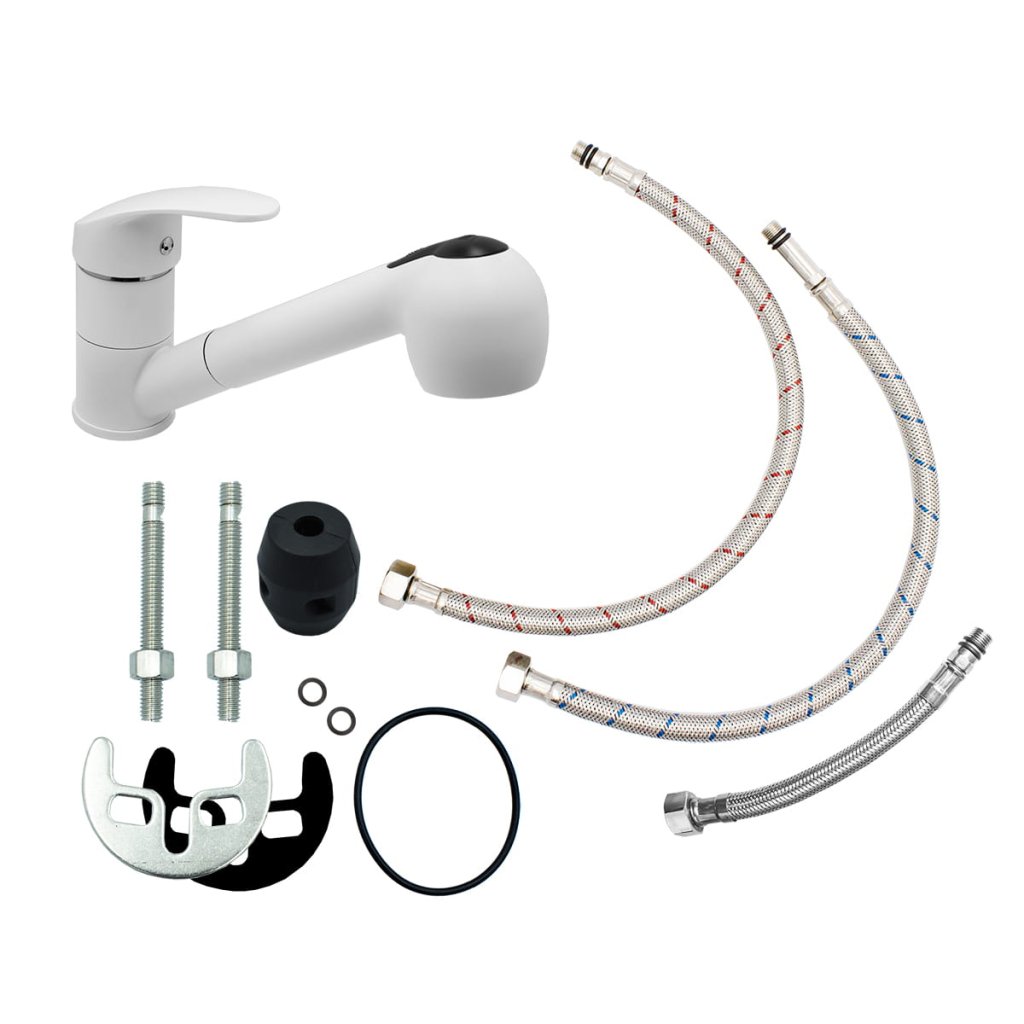Gamma Atut, önálló mosogatócsaptelep kihúzható kifolyóval, matt fehér, GMA-BAT-WH