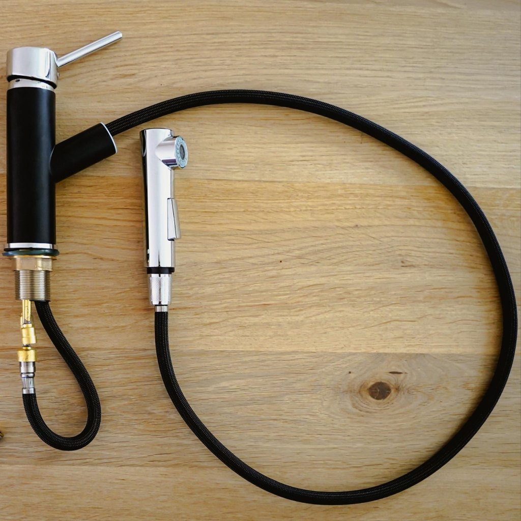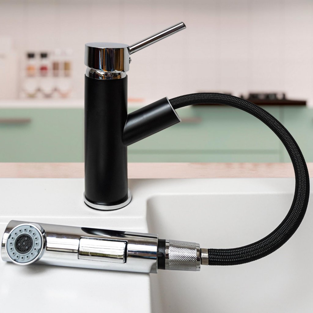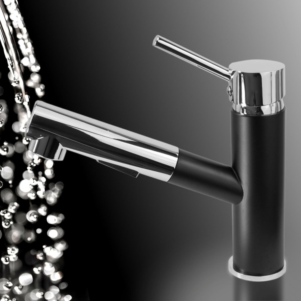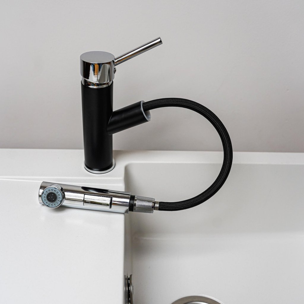 Gamma Axo, szabadon álló mosogatócsaptelep kihúzható kifolyóval, fekete-króm, GMA-BCO-BK