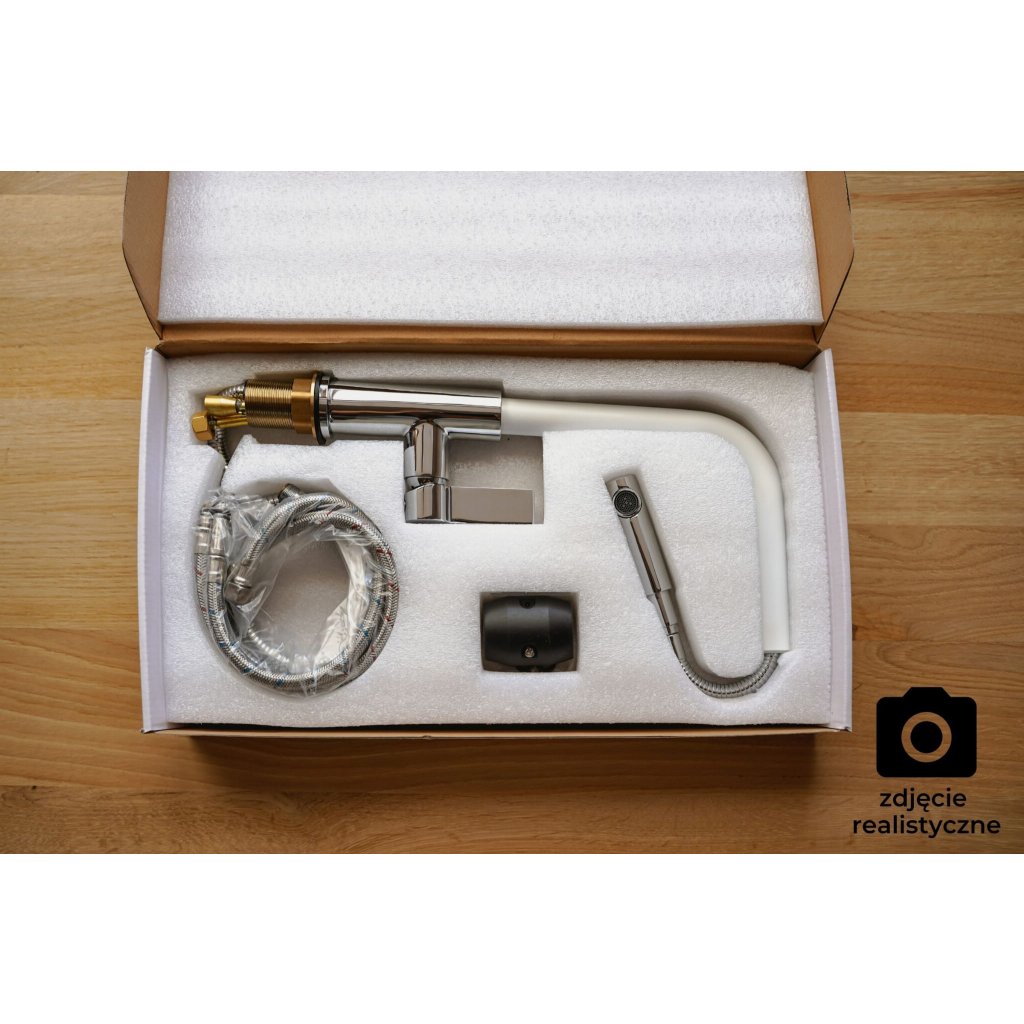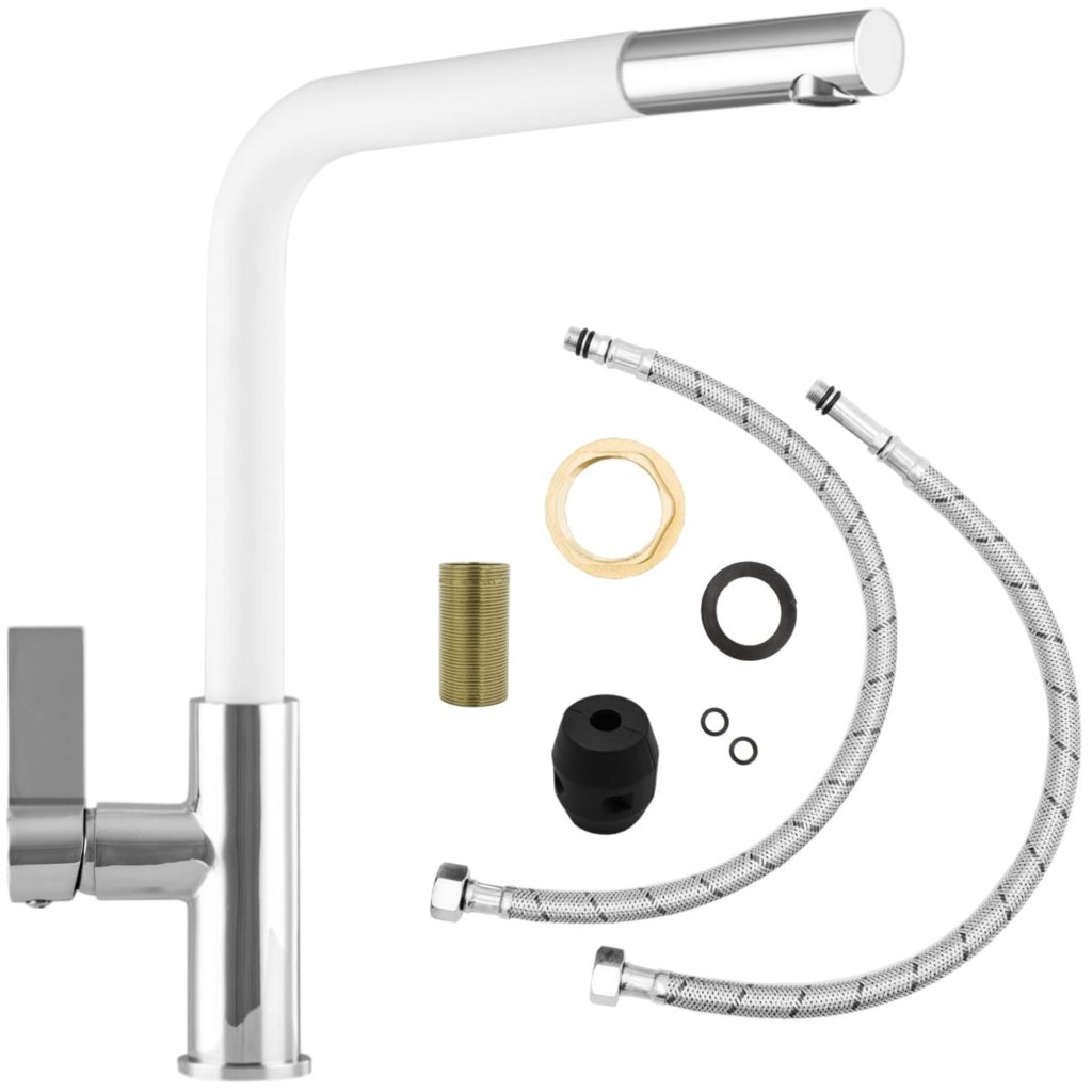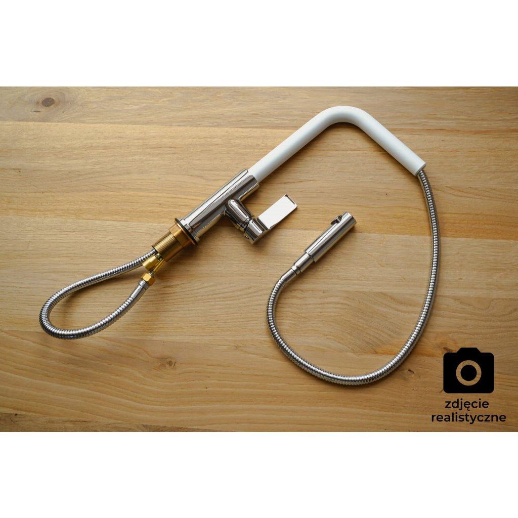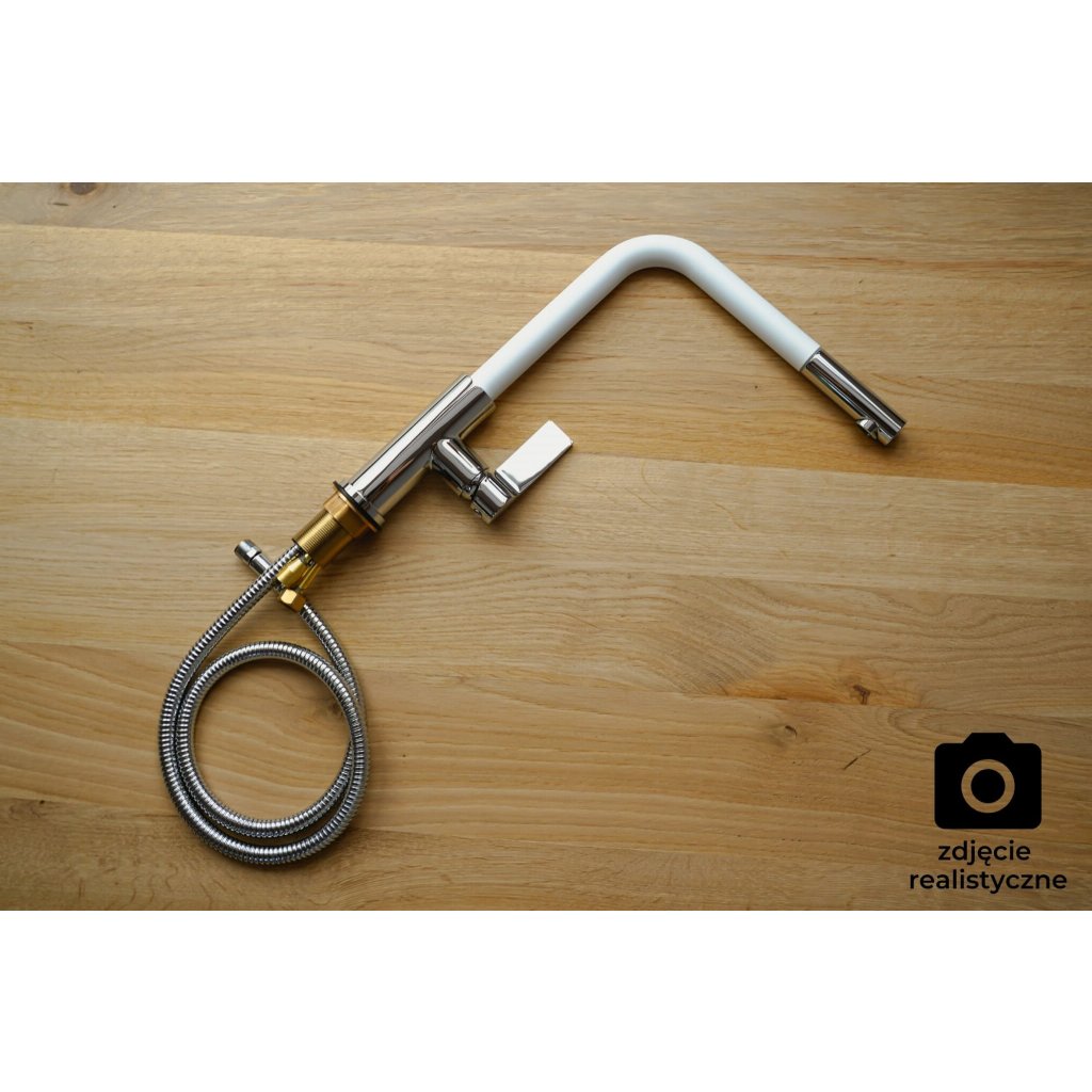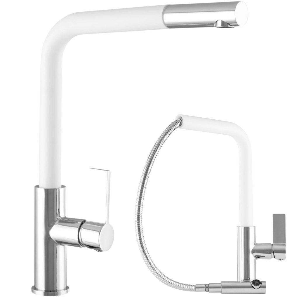 Gamma Base, szabadon álló mosogató csaptelep kihúzható kifolyóval, fehér-króm, GMA-BSE-WH
