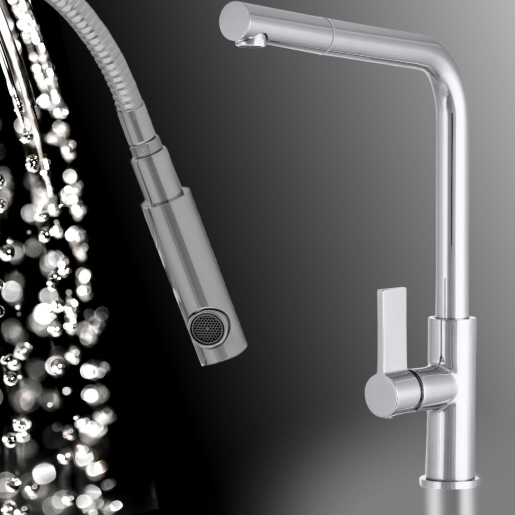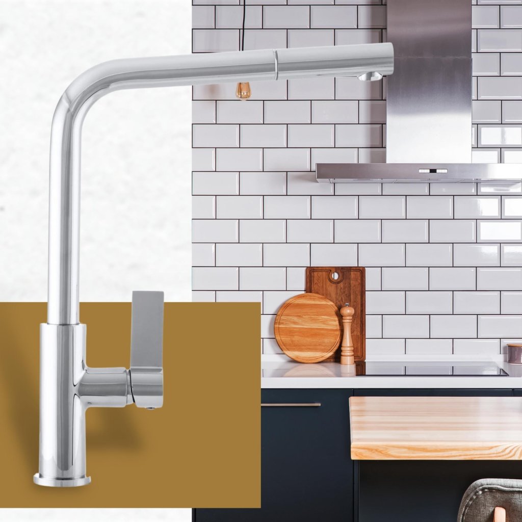 A színes kihúzható kifolyós konyhai csaptelep sok konyhába gyönyörűen illeszkedik. A krómozott sárgaréz test modern és tartós megoldást teremt.