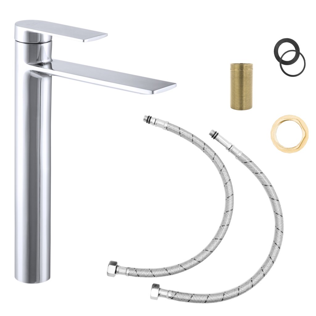 - A csomag tartalma: mosdó csaptelep, szerelőkészlet, tömítések, csatlakozó tömlők
