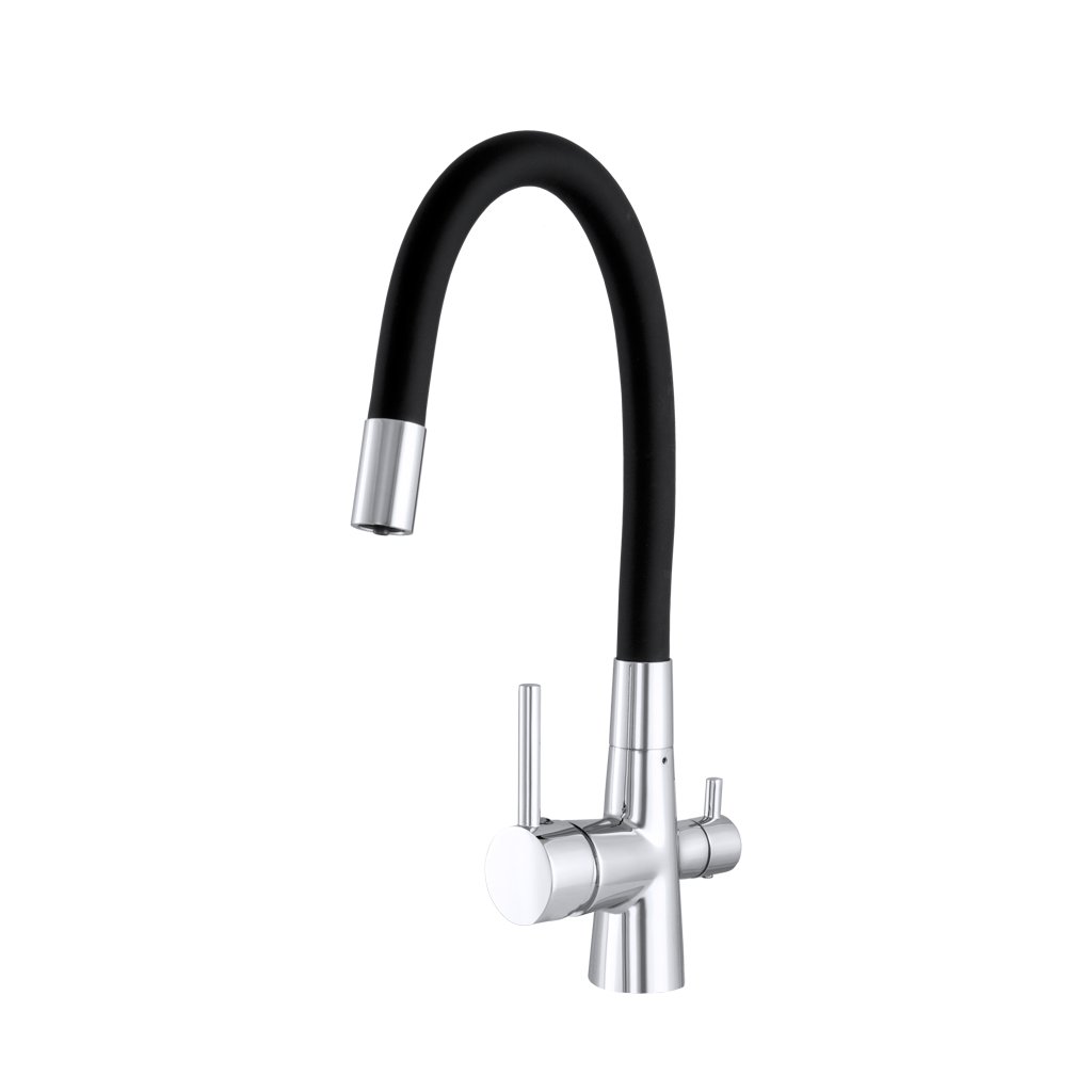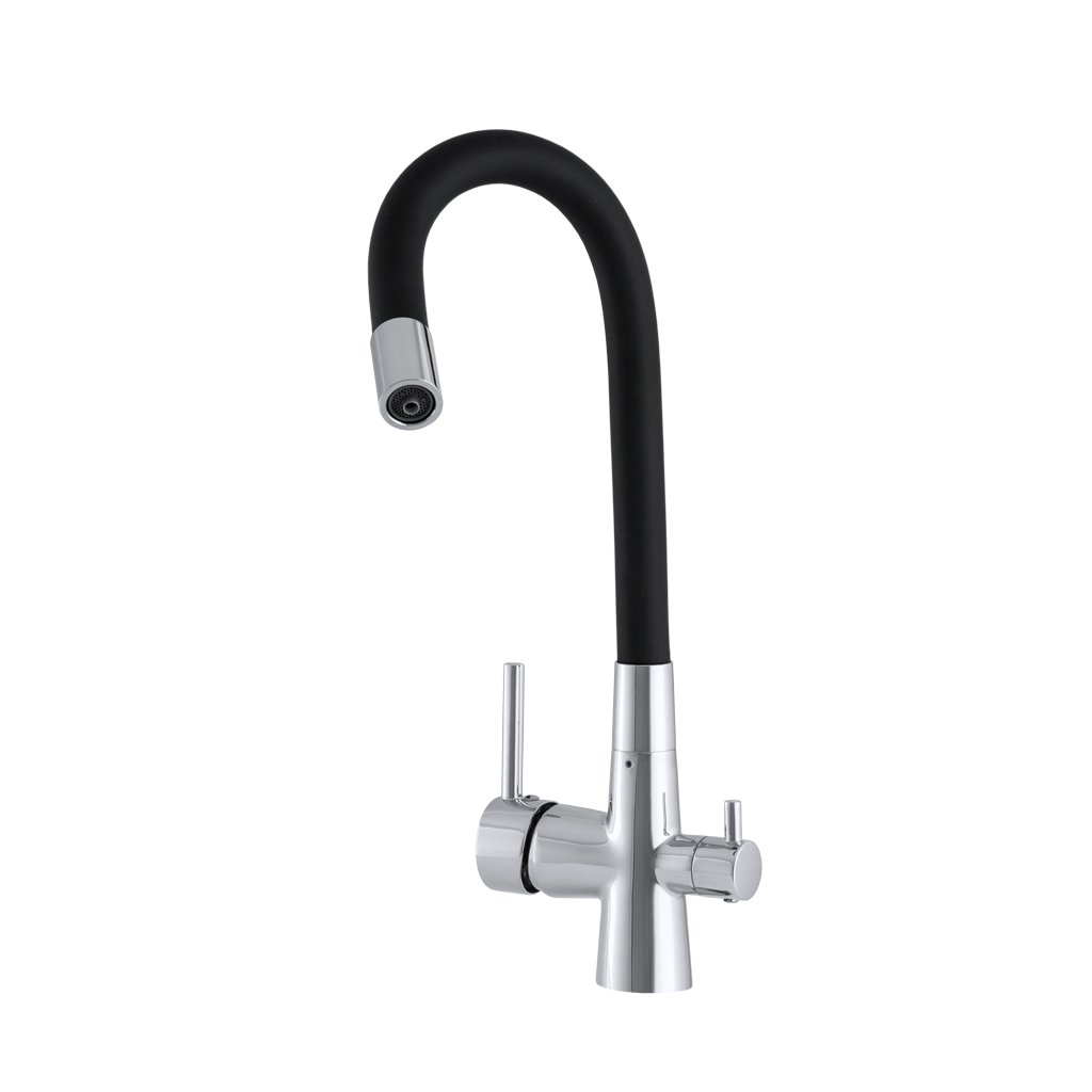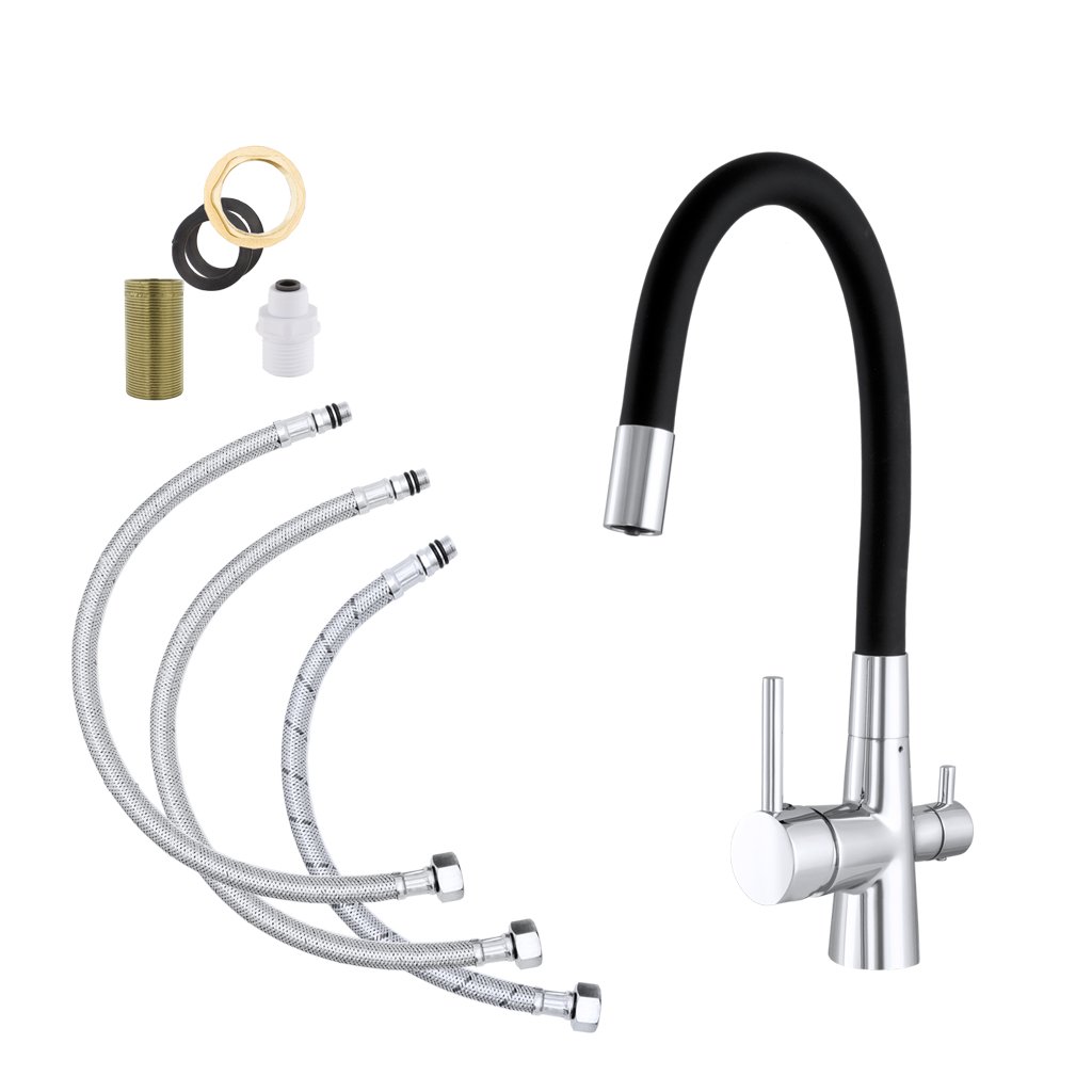 Gamma Flex, háromutas mosogatócsaptelep flexibilis karral, vízszűrő csatlakozóval, matt króm-fekete, GMA-BFXF-CH