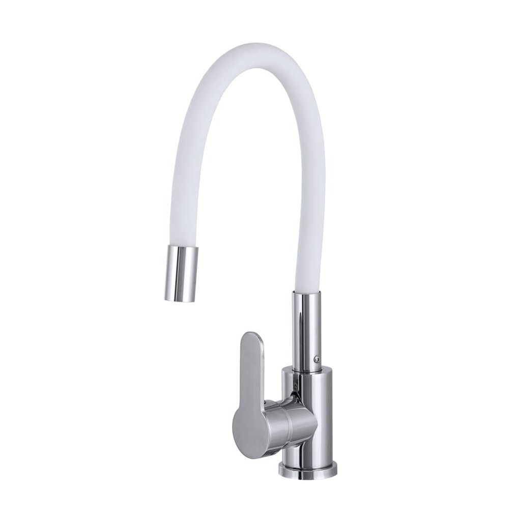Gamma Flex 2000, szabadon álló mosogató csaptelep rugalmas karral, fehér matt-króm, GMA-BFX-2000WH