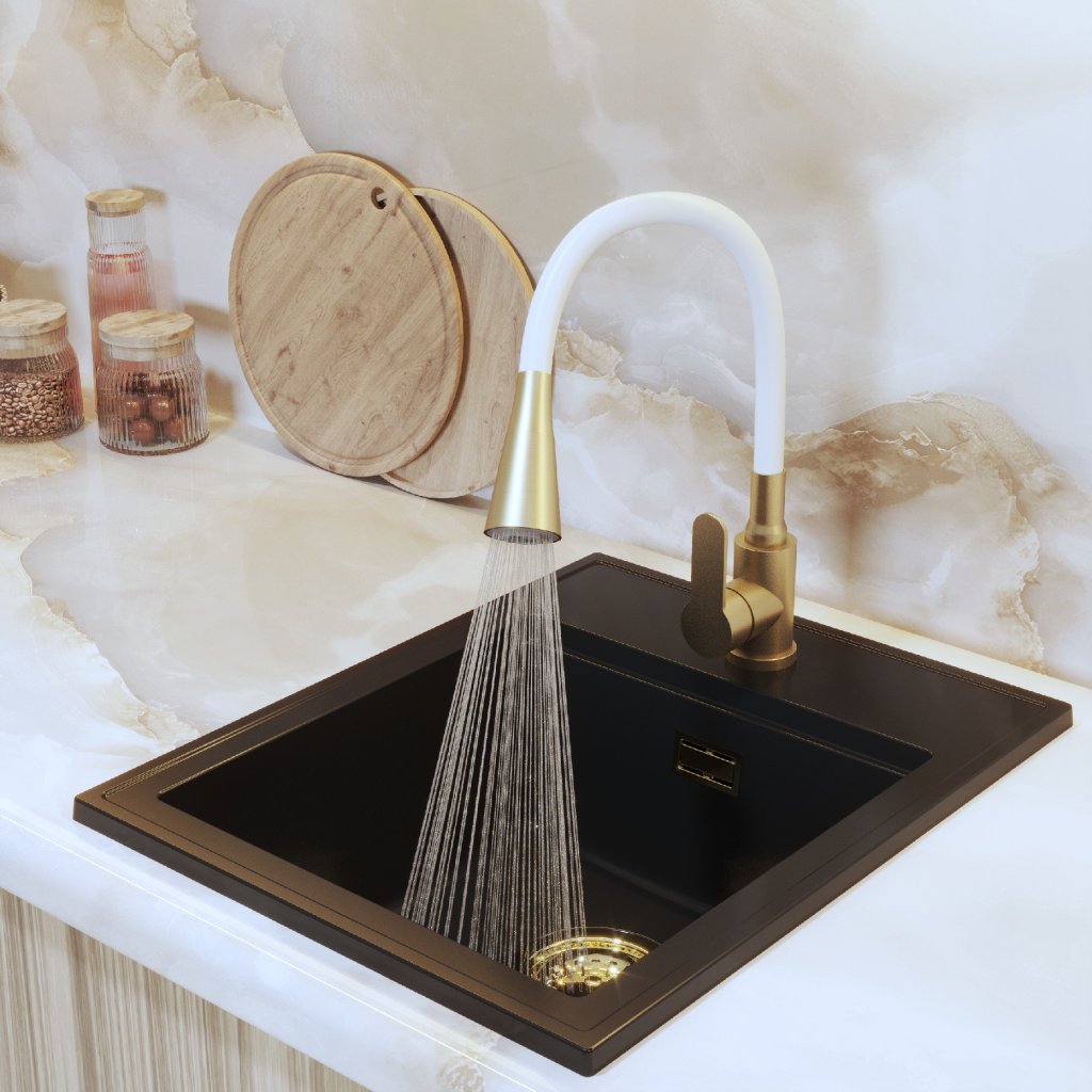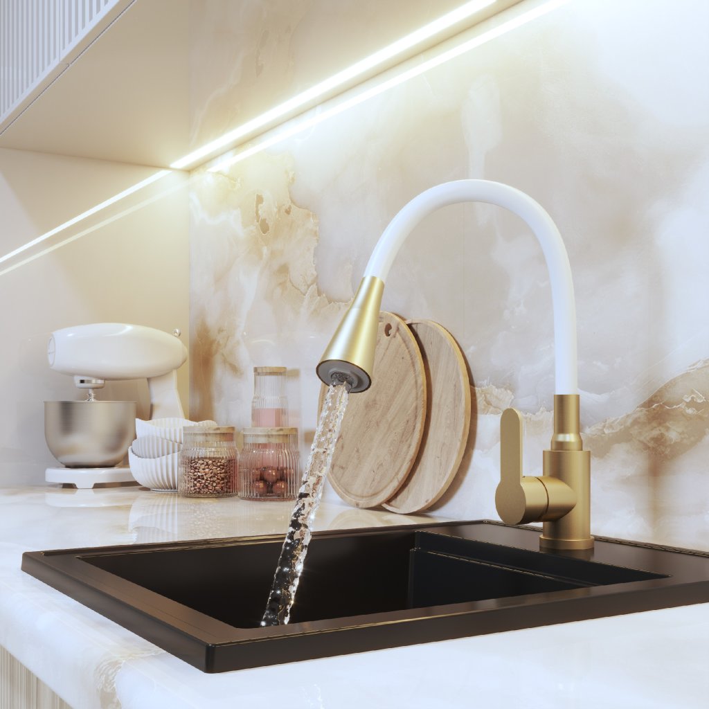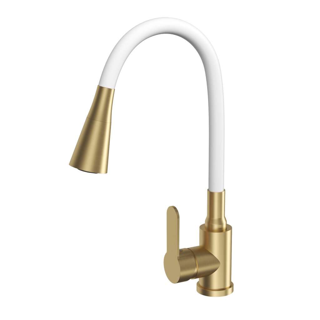 Gamma Flex 3000, álló mosogatócsaptelep flexibilis karral, matt fehérarany, GMA-BFX-3000WHGD