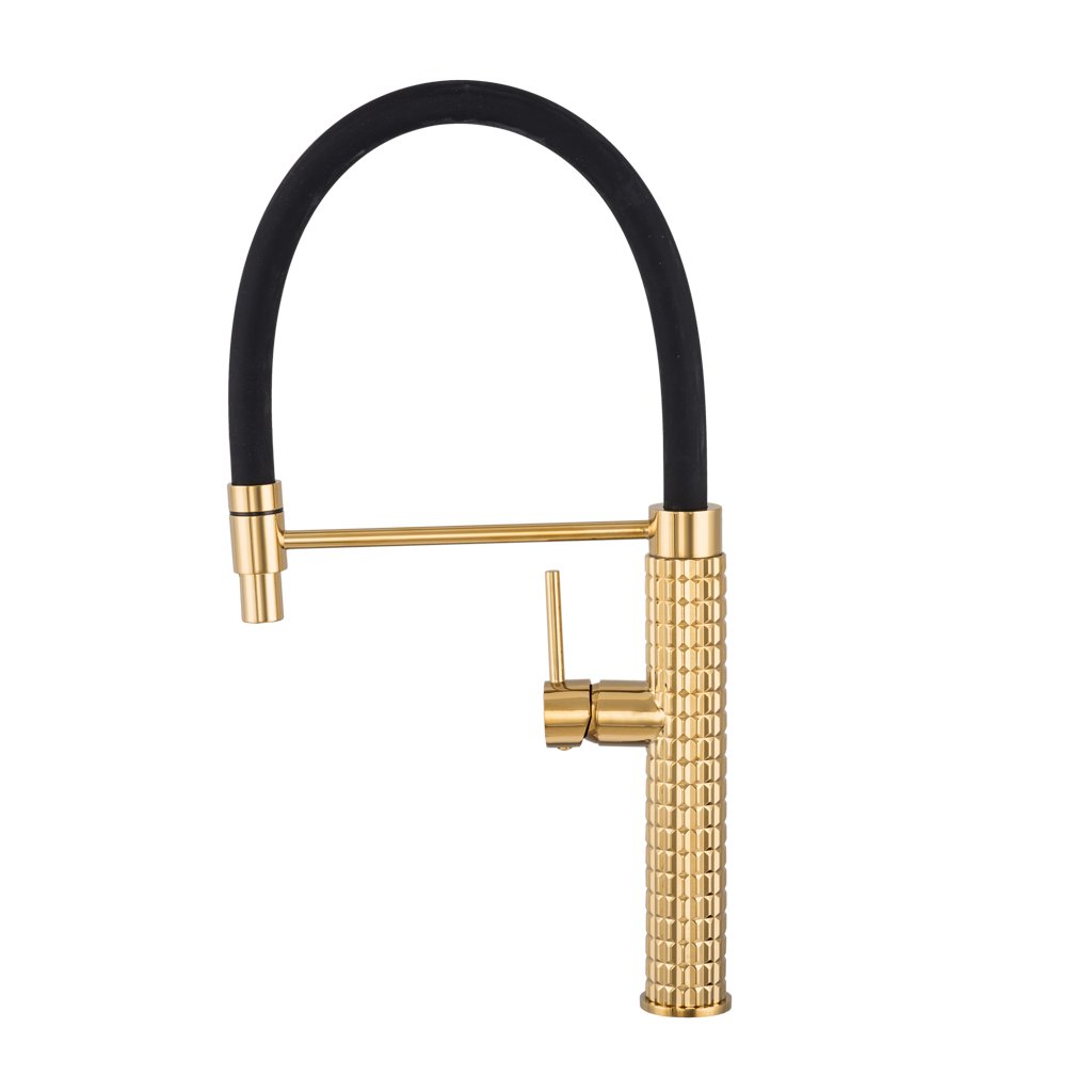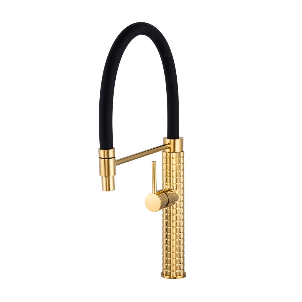 Gamma Full Pro, magas mosogató csaptelep rugalmas karral, fekete matt-arany fényes, GMA-BFLP-GD
