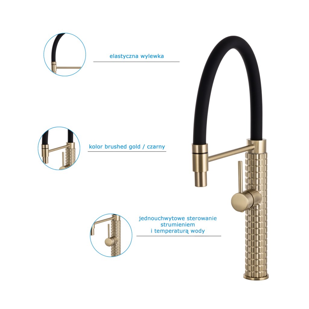 Gamma Full Pro, magas mosogatócsaptelep, matt arany, GMA-BFLP-BGD