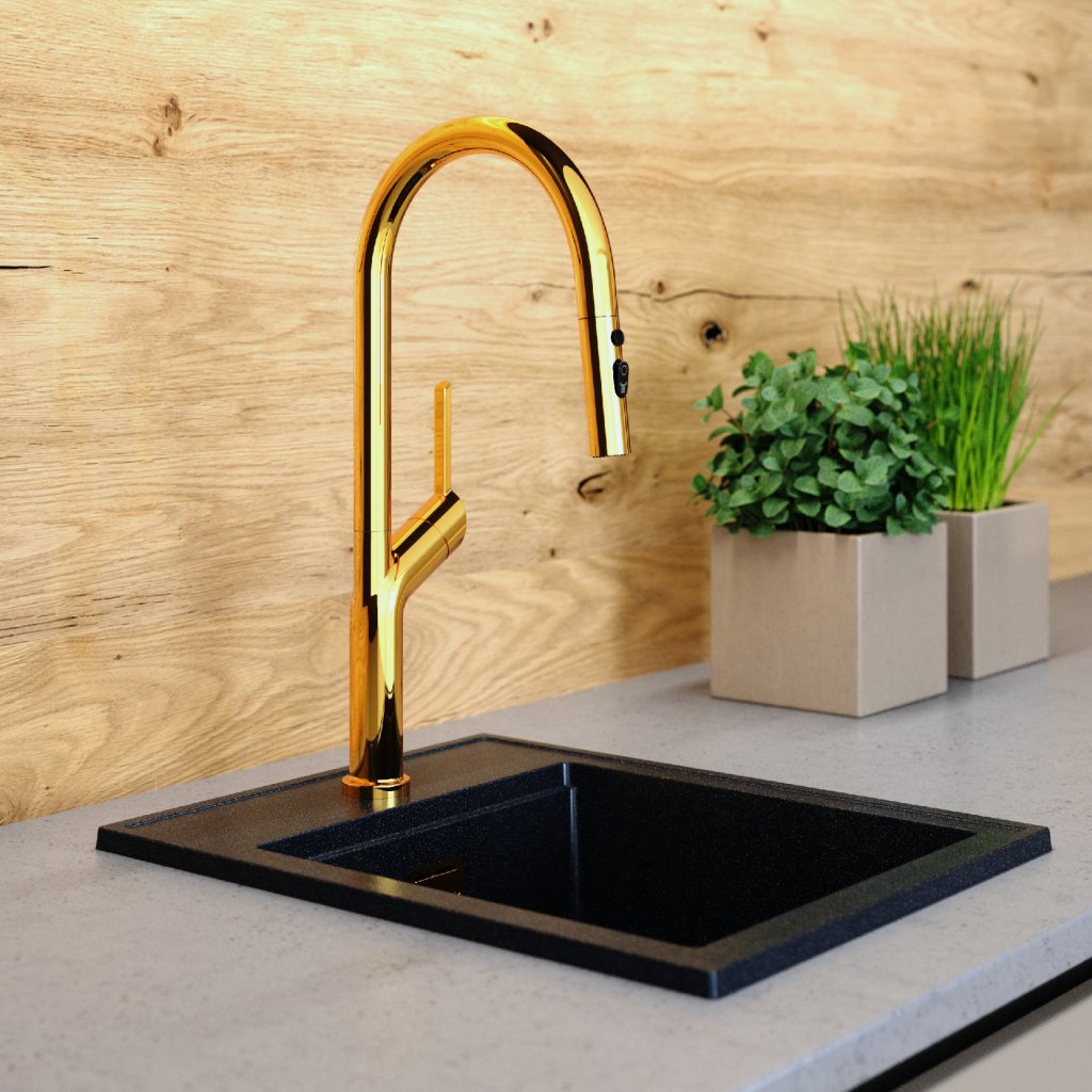 Gamma Kerek, magas mosogatócsaptelep h-559, fényes arany, GMA-BRDP-GD