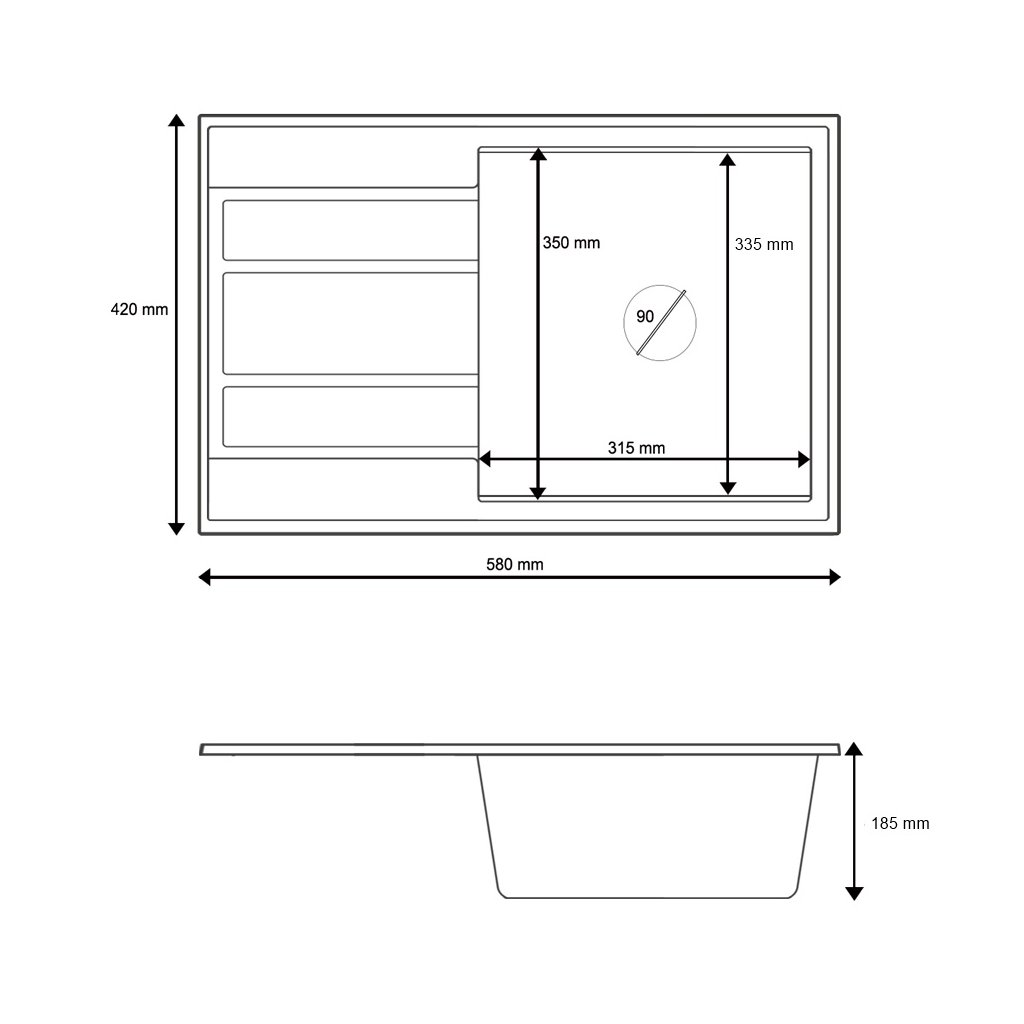 - Típus: 1 tálos gránit mosogató rövid leeresztővel