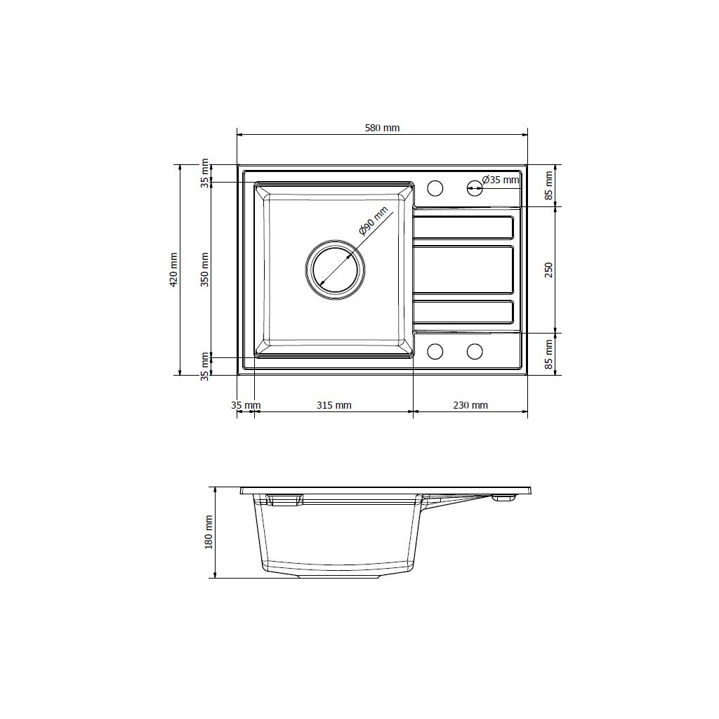 - Nanogránit mosogató 2 fúrt csaplyukkal