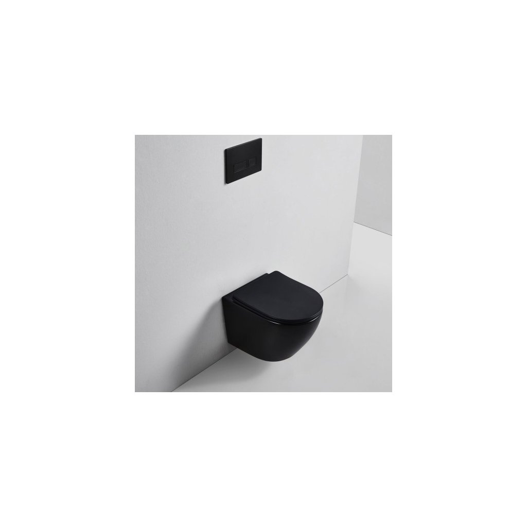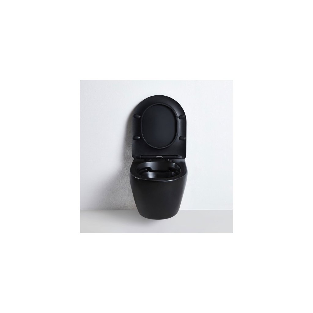 Gamma Mut, falra akasztható wc csésze 48x37 cm Peremnélküli, lassan eső ülőfelülettel, fekete matt, GMA-203BK