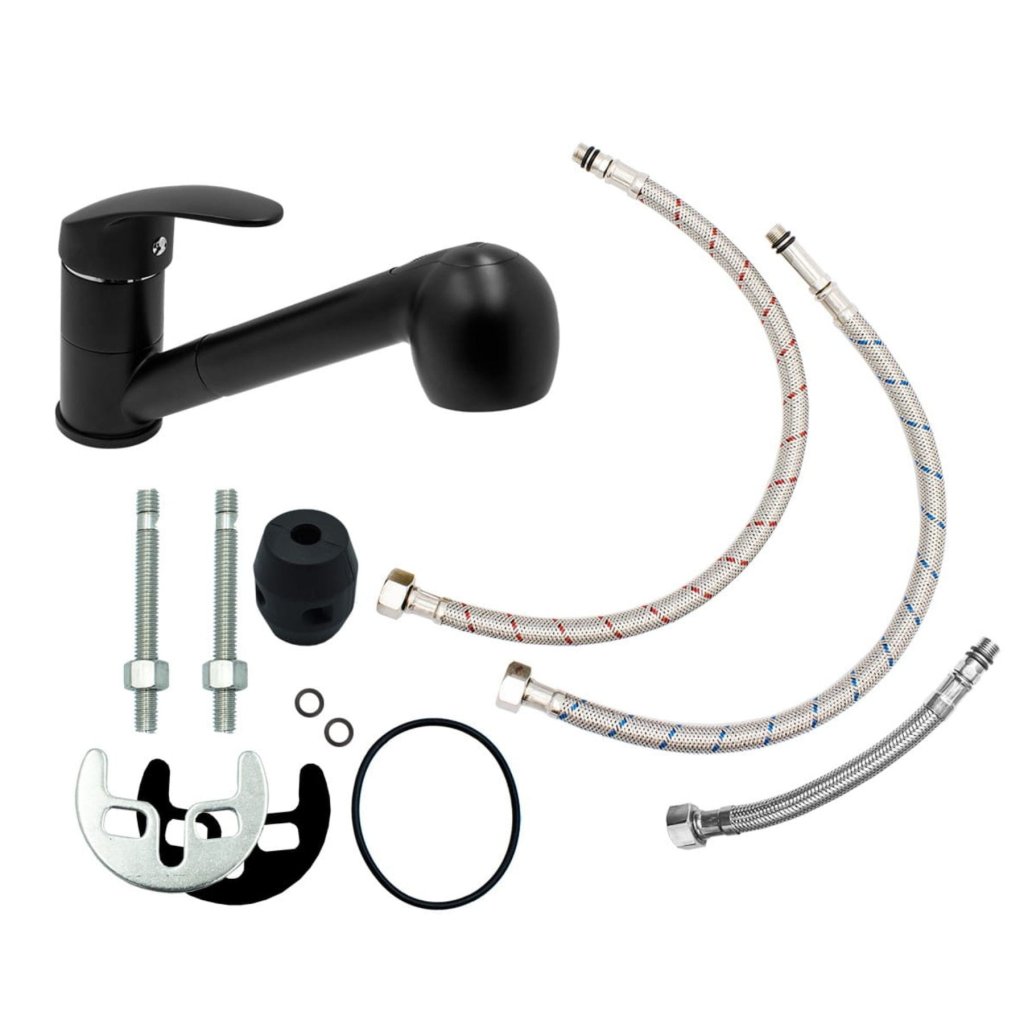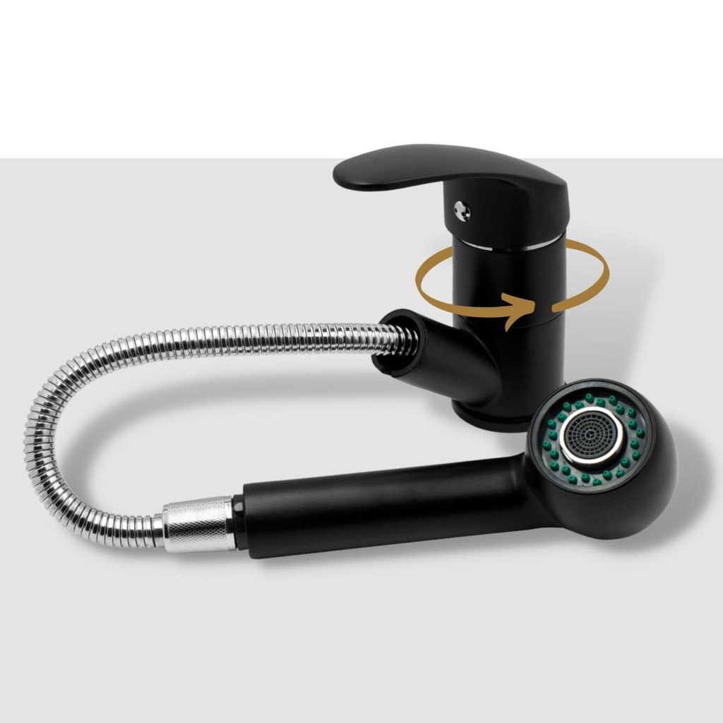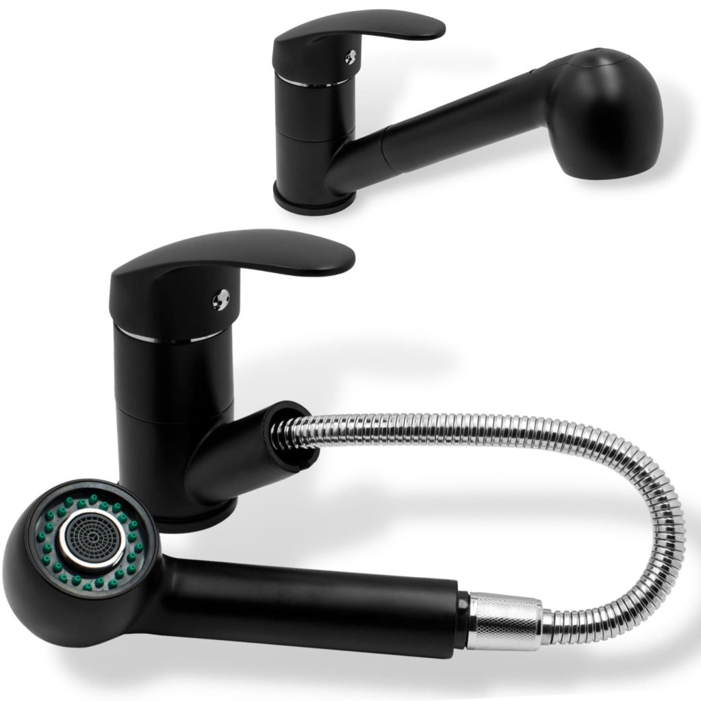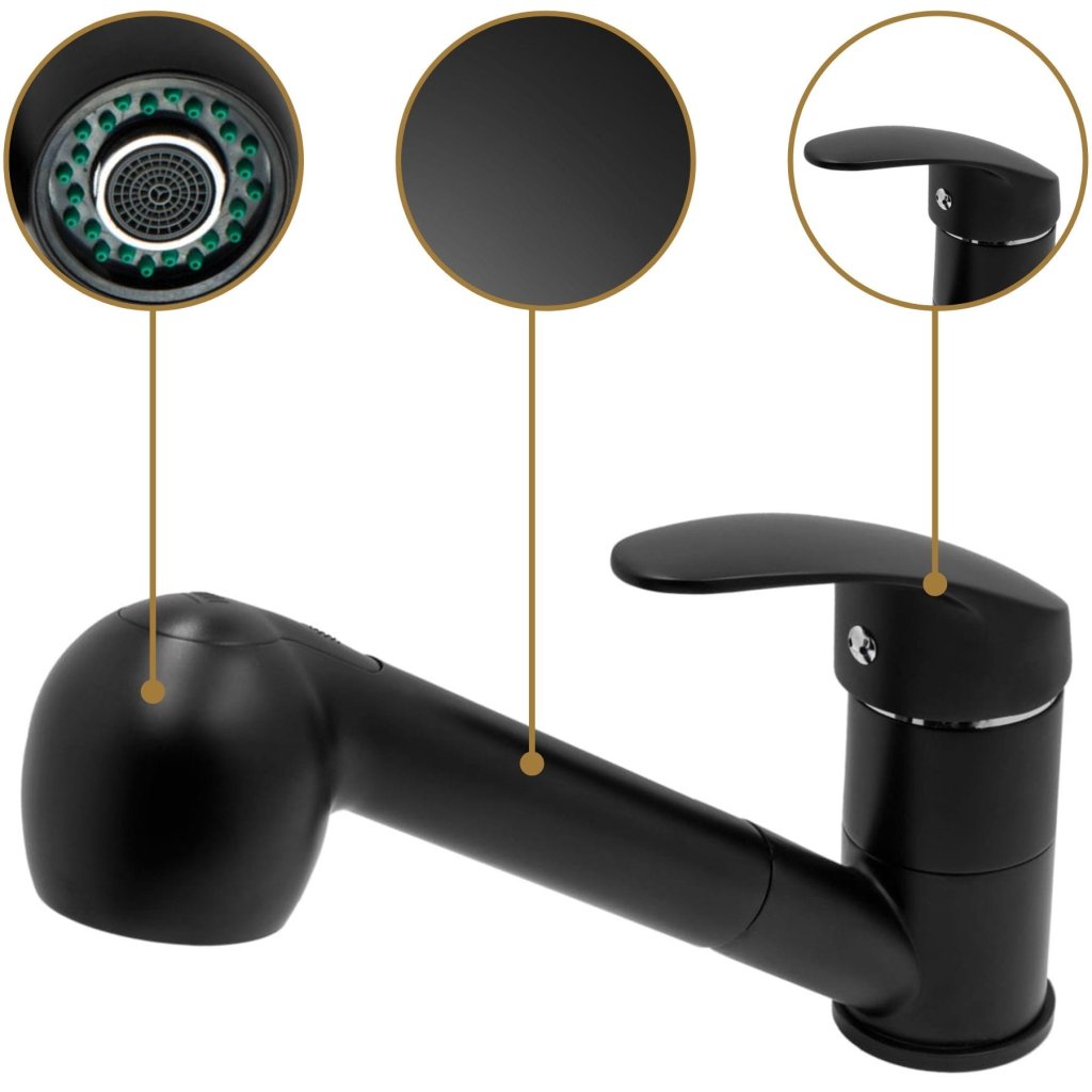 Gamma Neon, szabadon álló mosogató csaptelep kihúzható kifolyóval, matt fekete, SKQ-BAT-BK