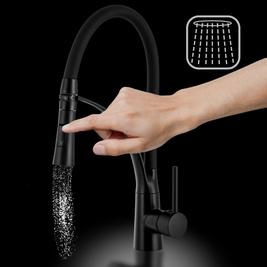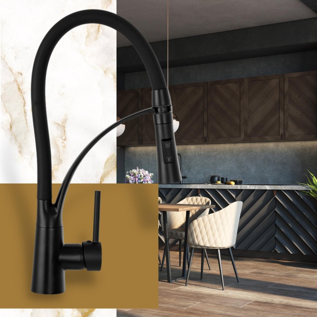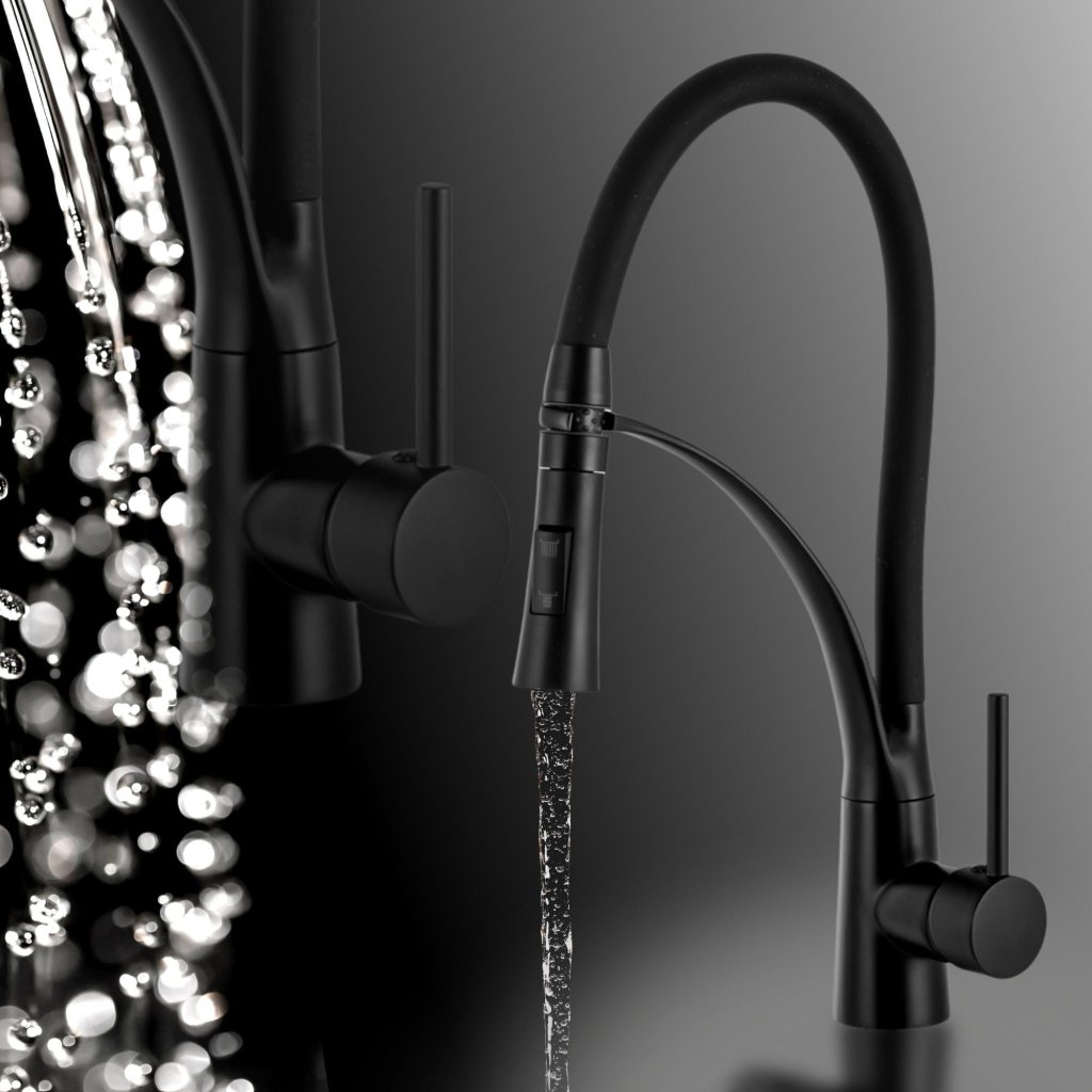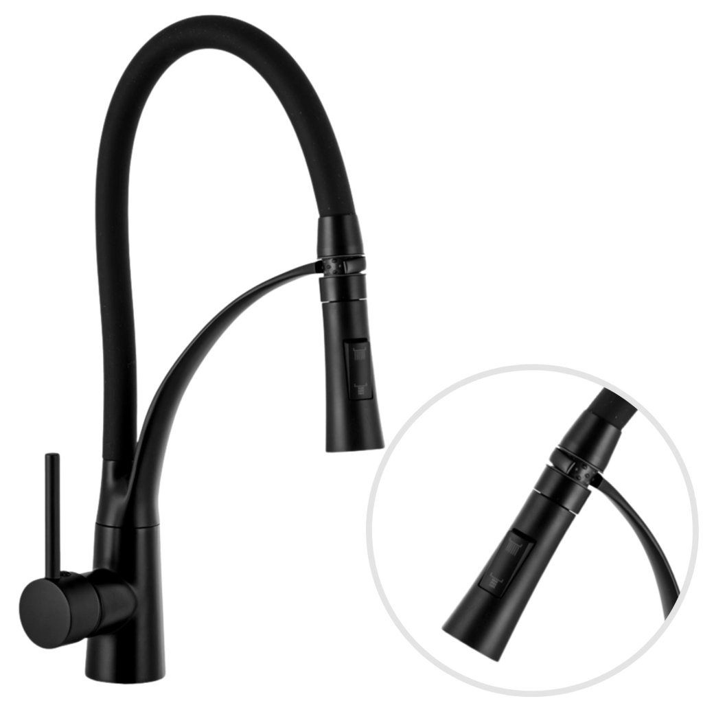 Gamma Nexo, álló magas konyhai csaptelep rugalmas karral és spray-vel, fekete matt, GMA-BNO-BK