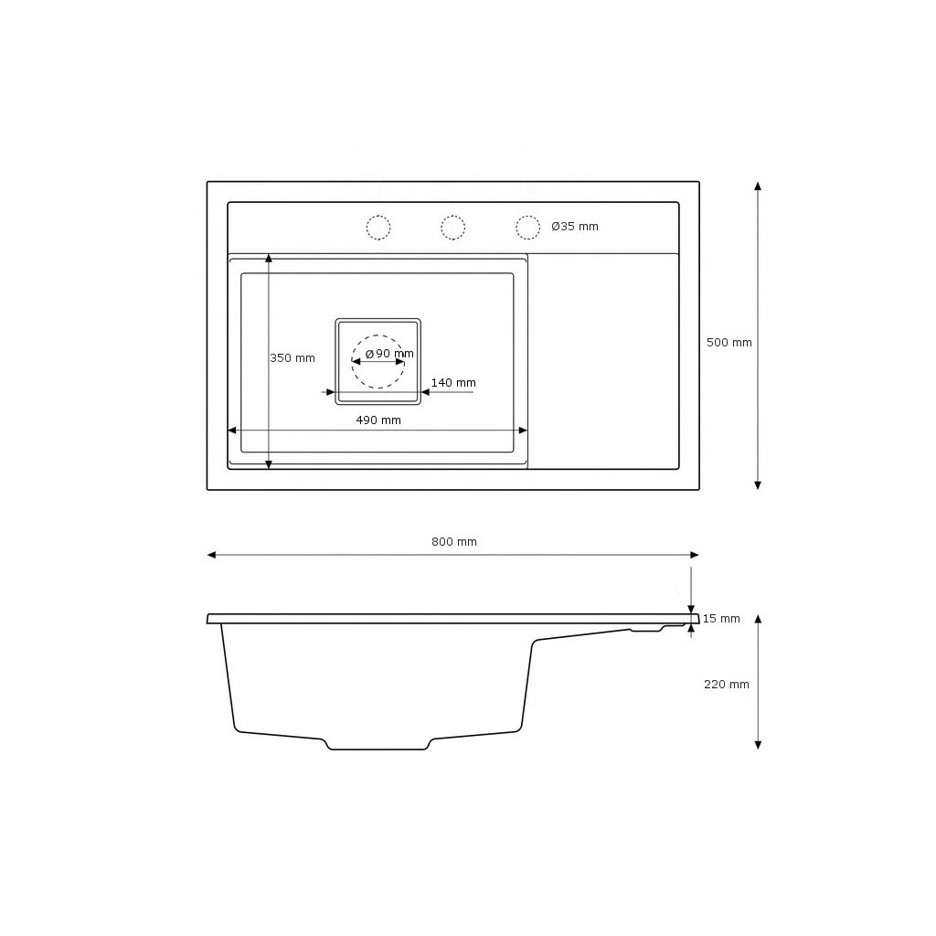 Gamma Quadro 8151, 1 rekeszes gránit mosogató 800x500x220 mm, szürke, GMA-ZLE000188