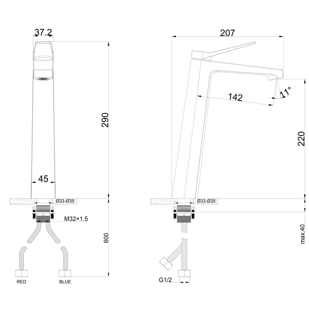 Gamma Roma, magas mosdócsaptelep h-290, matt fekete, GMA-BRUW-BK