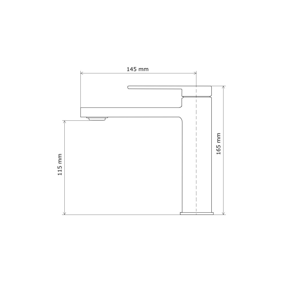 - A kifolyó kinyúlása a csap közepétől: 145 mm