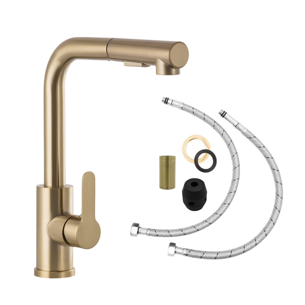 Gamma Side 2, álló mosogatócsaptelep kihúzható kifolyóval H-300, matt arany, GMA-BSE2-BG