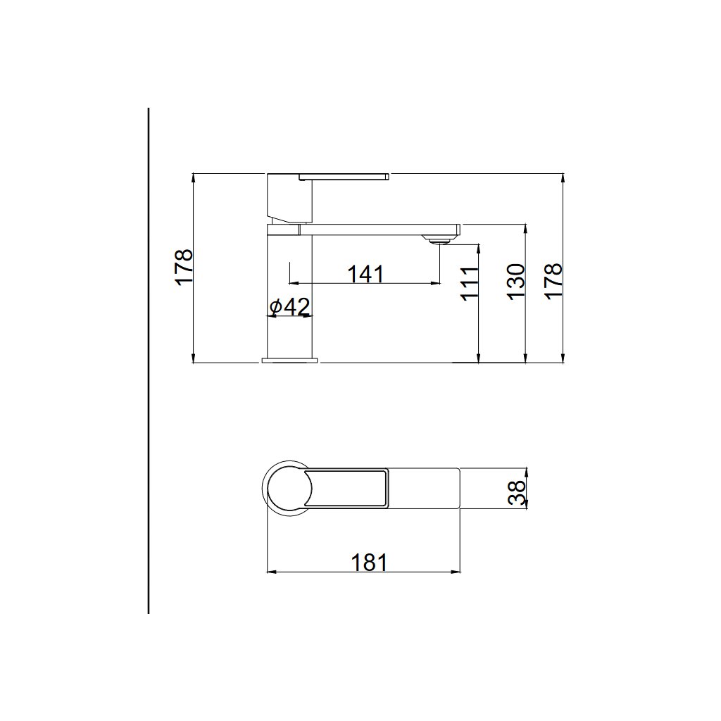 - A kifolyó kinyúlása a csap közepétől: 141 mm