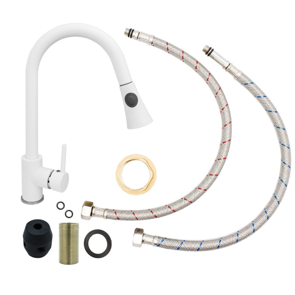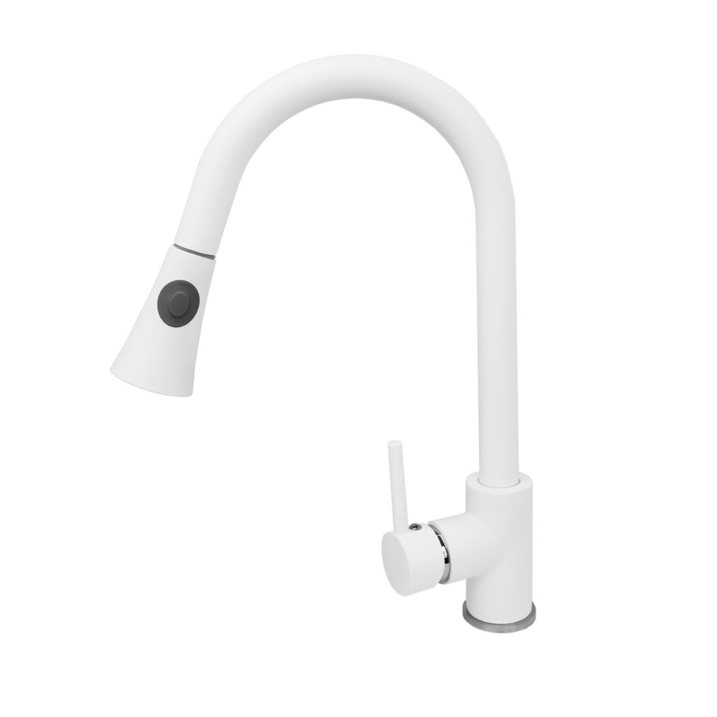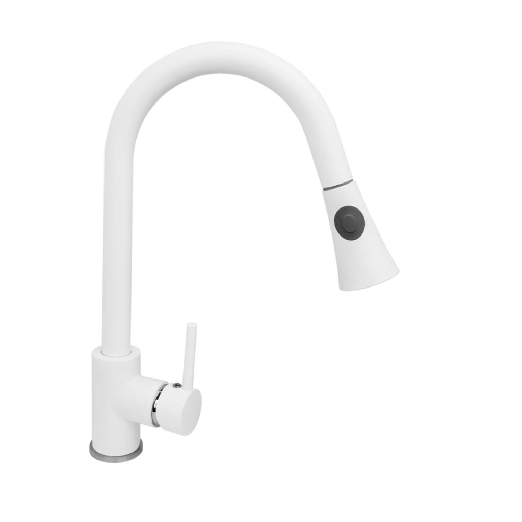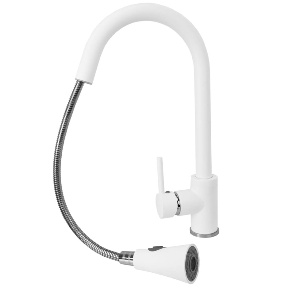 Gamma Taru, magas mosogató csaptelep kihúzható kifolyóval, fehér, GMA-BT-WH