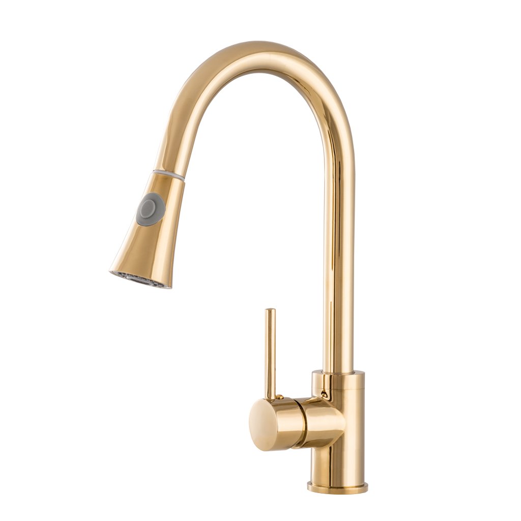 Gamma Taru, magas mosogató csaptelep kihúzható kifolyóval, fényes arany, GMA-BT-GD