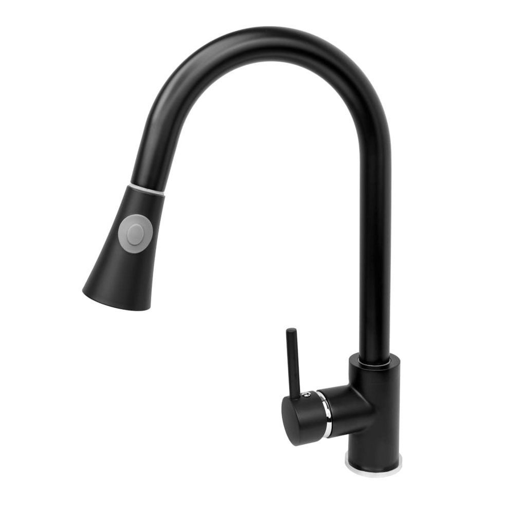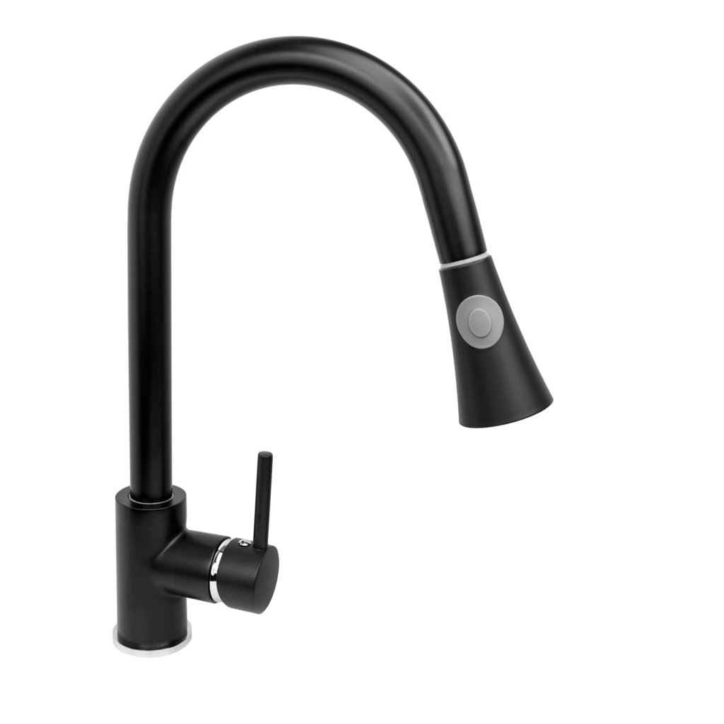 Gamma Taru, magas mosogató csaptelep kihúzható kifolyóval, matt fekete, GMA-BT-BK