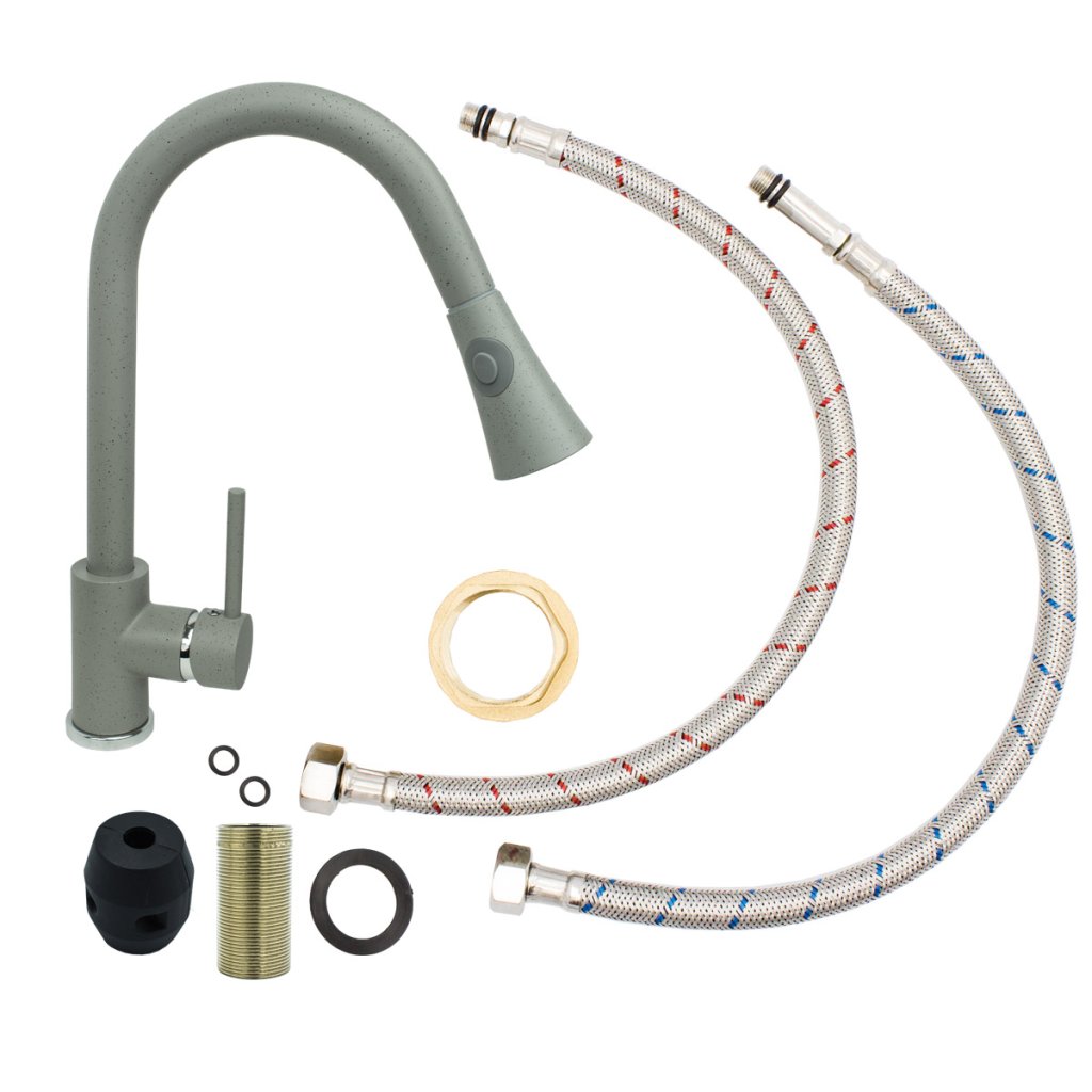Gamma Taru, magas mosogató csaptelep kihúzható kifolyóval, szürke pettyes, GMA-BT-G