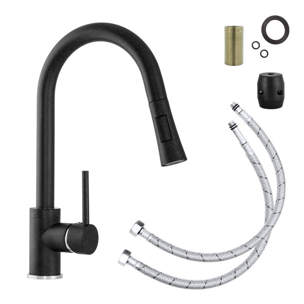 Gamma Taru N, magas mosogató csaptelep kihúzható 2 funkciós kifolyóval, fekete pettyes, GMA-BTN-BP