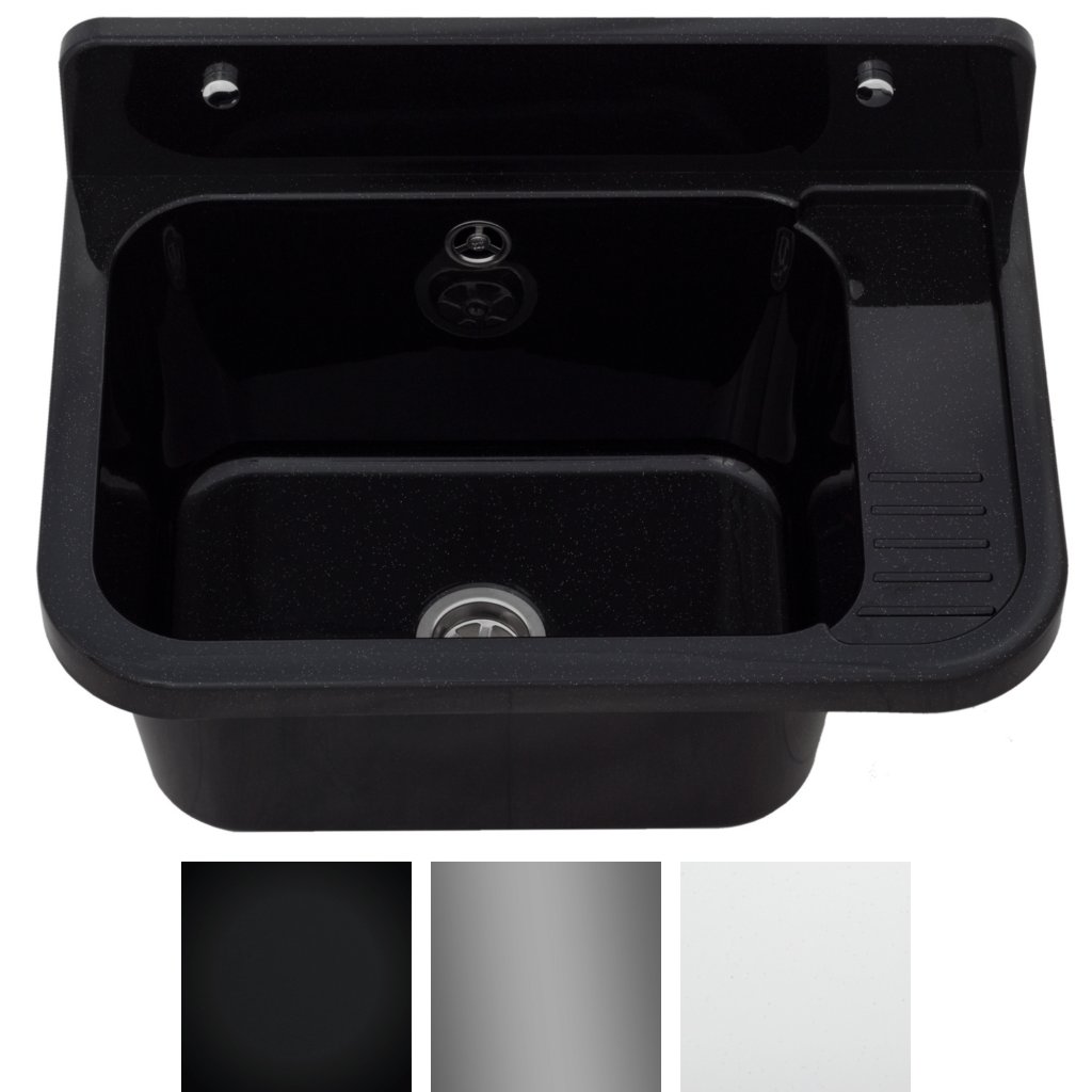 Gamma Universe, univerzális műanyag mosogató 50x34x31 cm + szifon, 1 kamrás, fekete, GMA-KGK50-BK