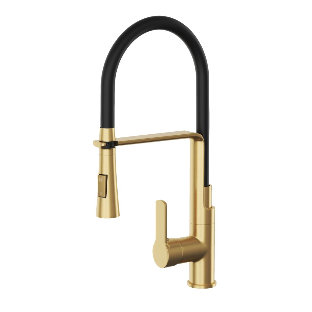 Gamma Vegas, álló, magas konyhai csaptelep flexibilis karral és sugárral, matt fekete-arany, GMA-BVSK-BGD