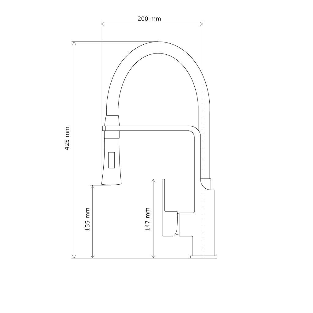 A konyhai csaptelep hosszú, rugalmas kifolyóval rendelkezik, amely egy fém tartóra van felszerelve. A rugalmas kifolyó kellemes tapintású, kiváló minőségű szilikonnal van bevonva. Lehetővé teszi a csaptelep hatótávolságának szabad beállítását.