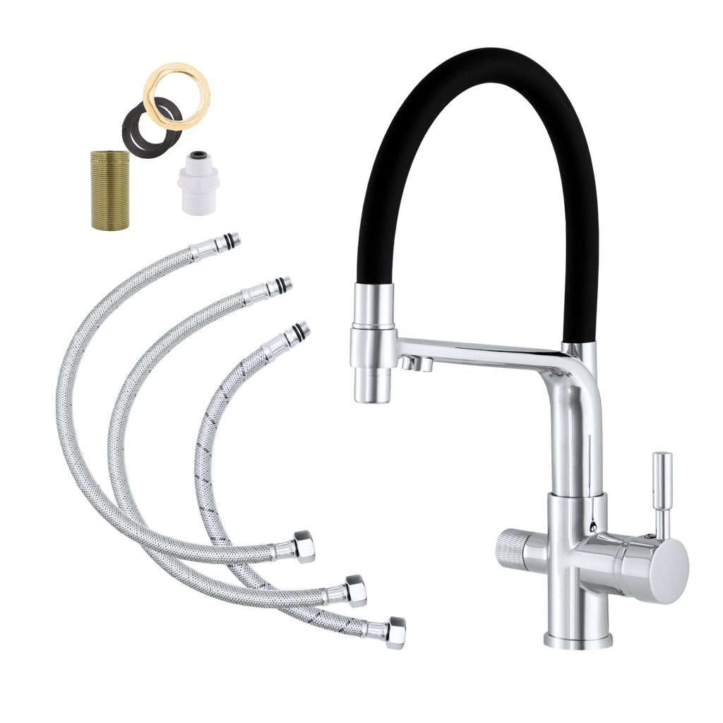 Gamma Vegas, háromutas mosogató csaptelep szűrt vízcsatlakozással, fekete-króm, GMA-BVSKF-CH