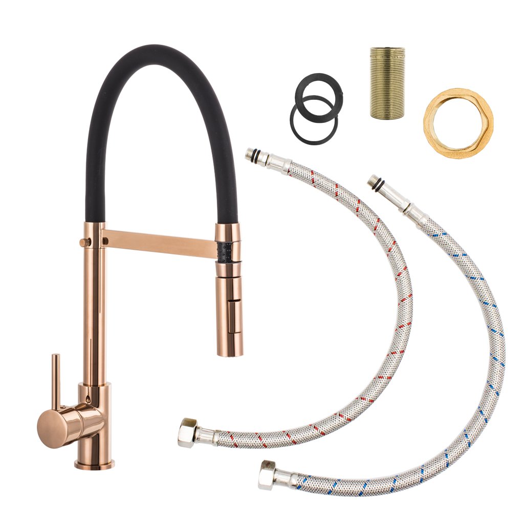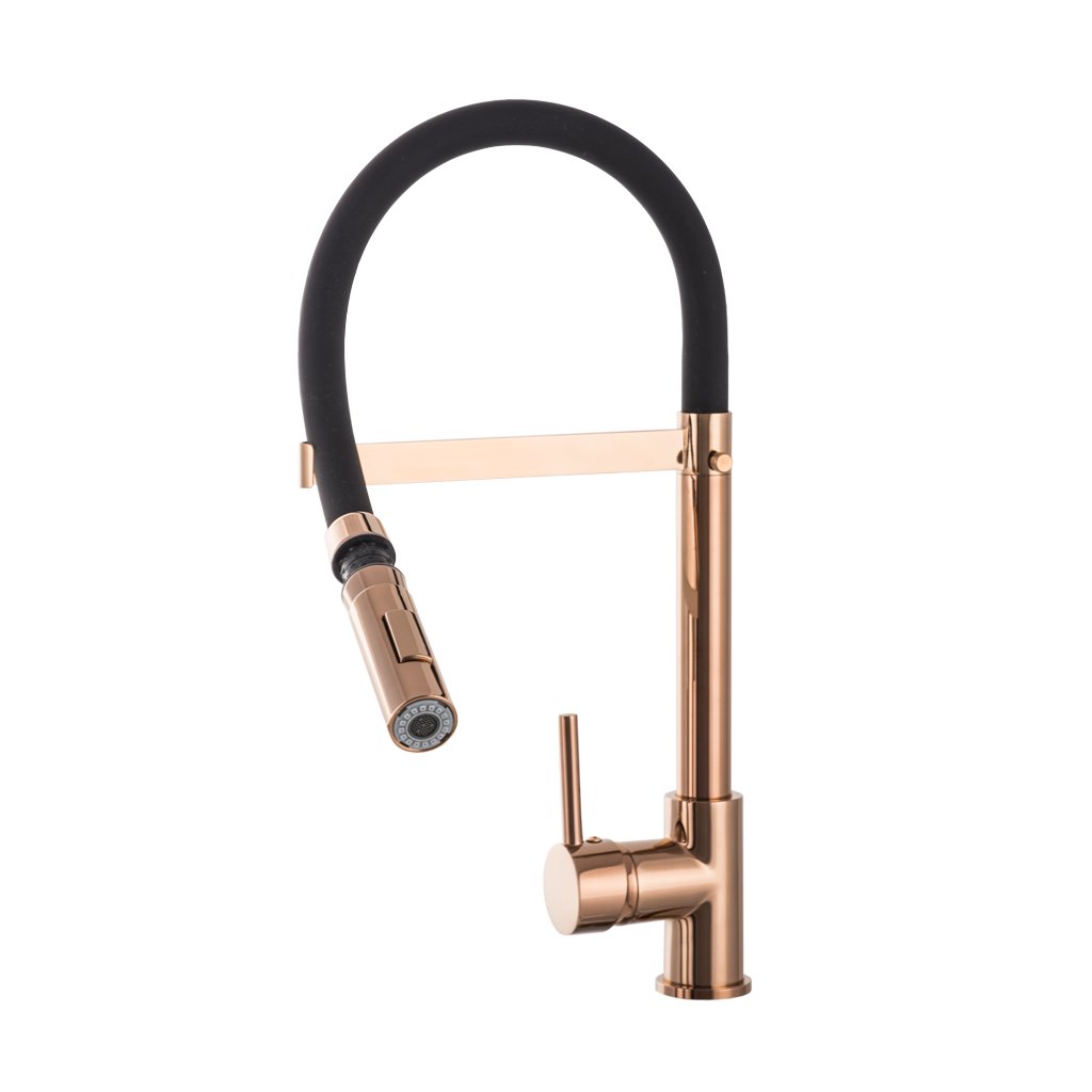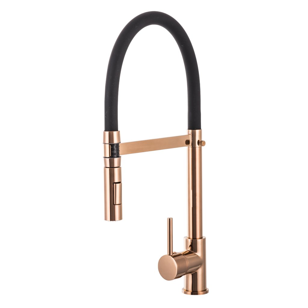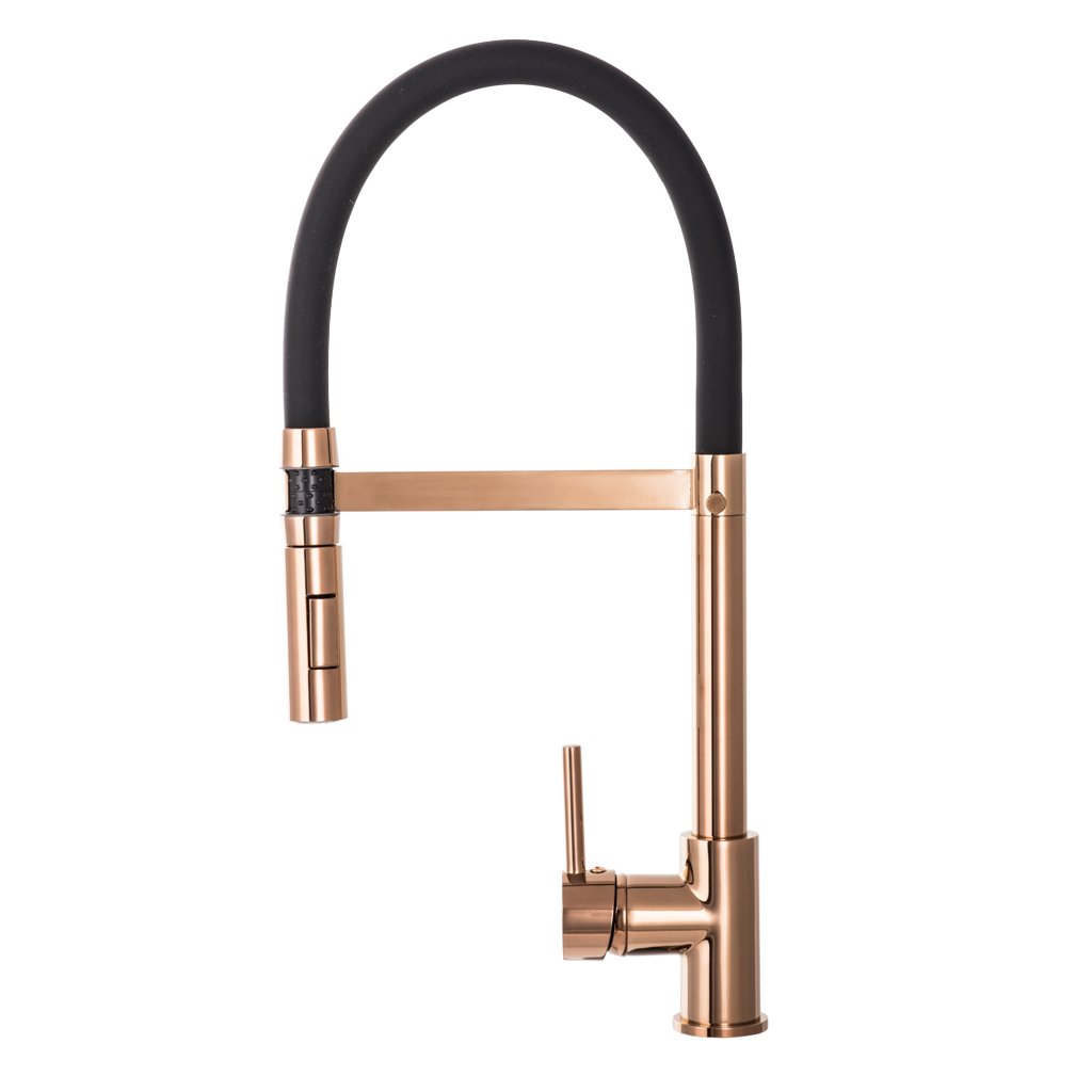 Gamma Vento, mosogató csaptelep rugalmas karral és 2 funkciós kifolyóval, matt fekete-rózsa arany, GMA-BVOK-RG