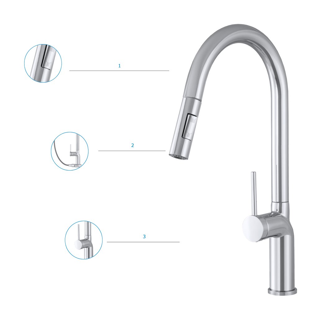 - Típus: magas mosogatócsaptelep kihúzható kifolyóval