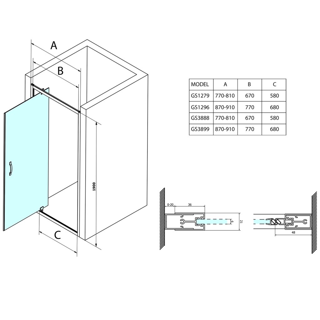 - Az oldalfal és az ajtó kombinálásával téglalap / négyzet alakú paravánt kap - választhat toló- és forgóajtók között