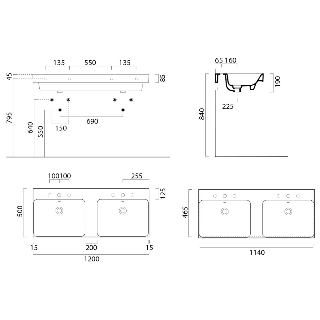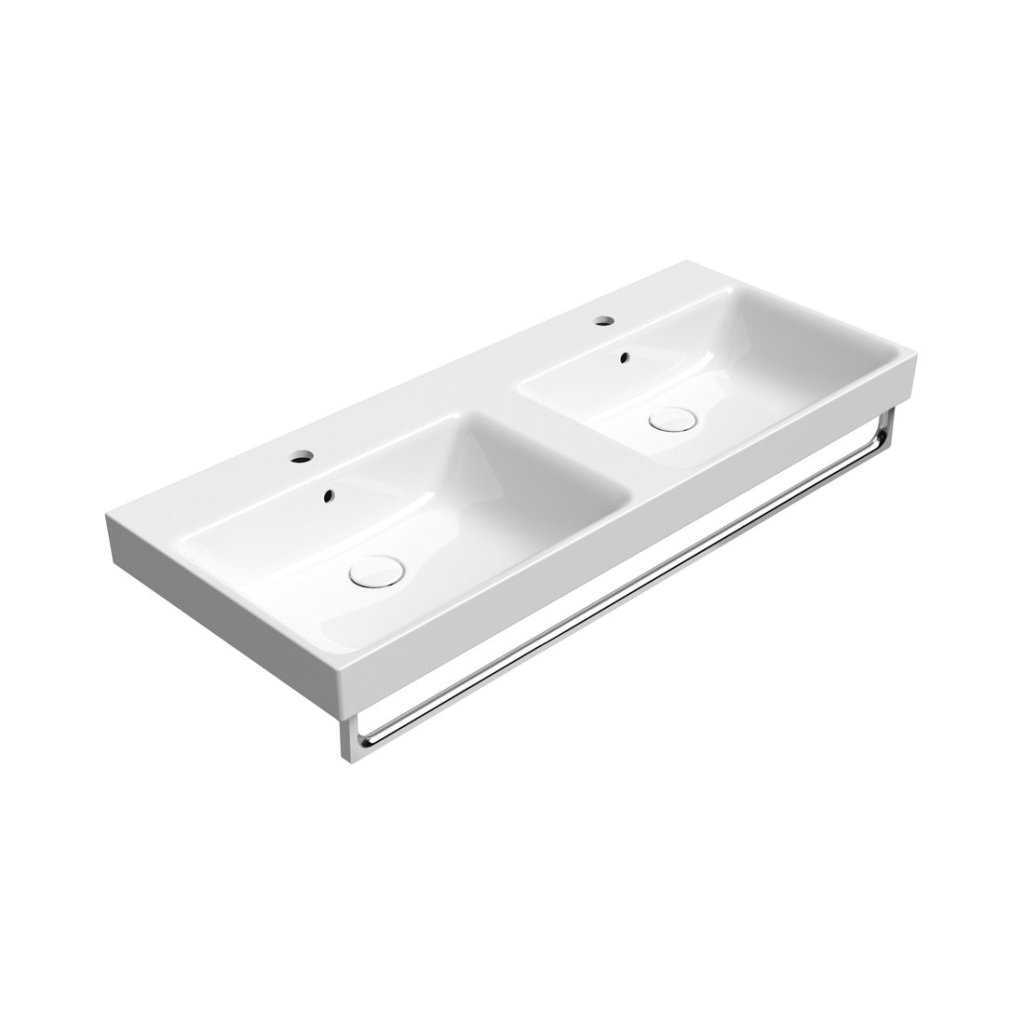 A GSI Nubes 120 cm-es kerámia dupla mosdó ideális megoldás két- vagy többtagú háztartások számára, ahol praktikus, higiénikus és dizájntudatos helyre van szükség a kéz- és arcmosáshoz. Tökéletes választás családi fürdőszobákba és modern belső terekbe.