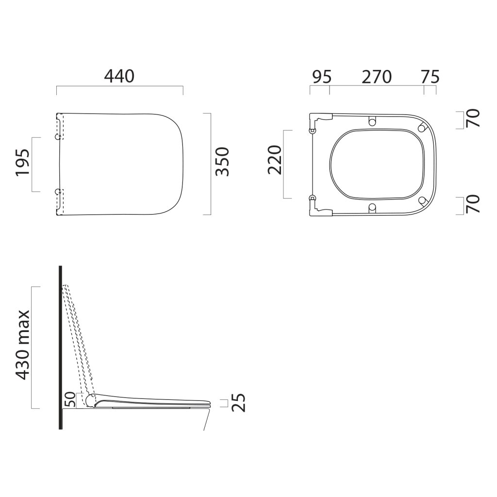 | Felszerelés | Easy Take (levehető ülés), SLIM (vékony), Soft Close (lassan összecsukható) | |