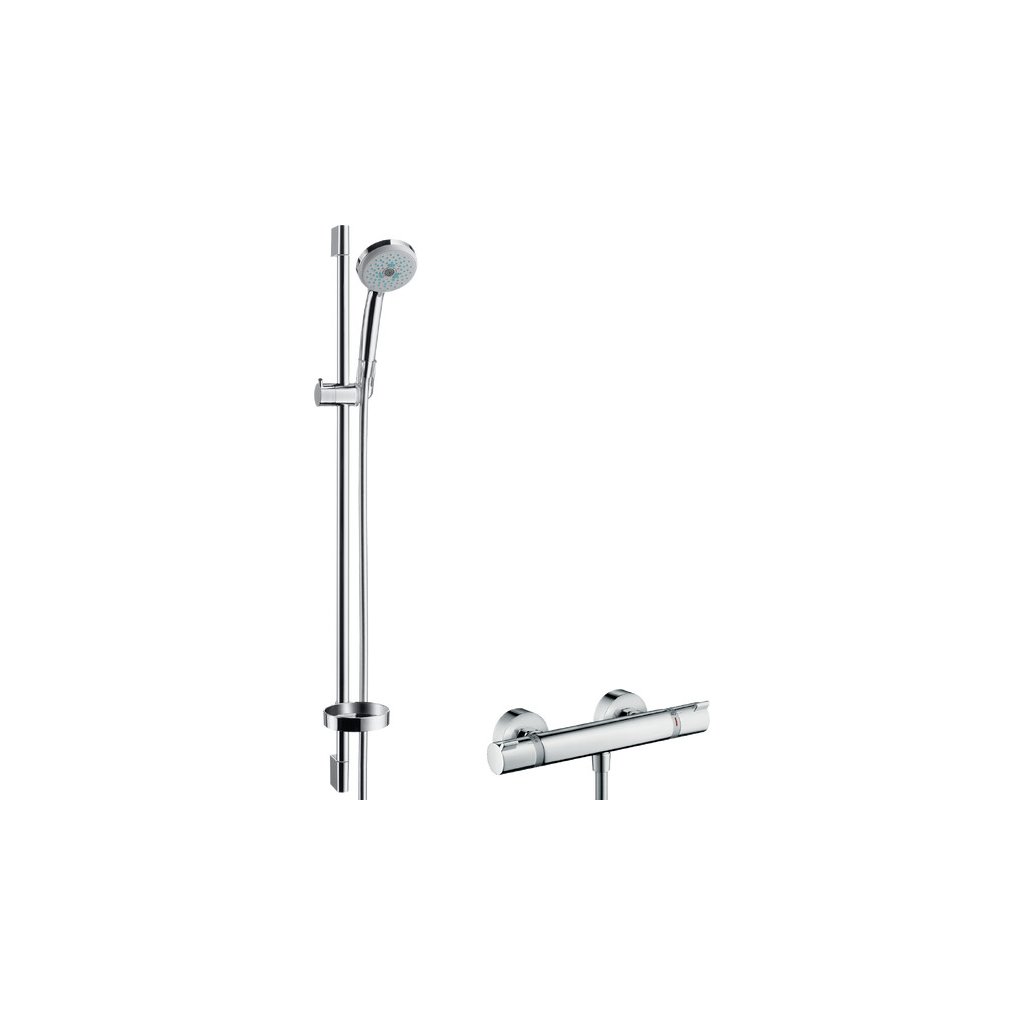 Hansgrohe Croma 100, Multi falra szerelhető zuhanykészlet Ecostat Comfort termosztáttal és zuhanyrúddal 90 cm, króm, HAN-27085000
