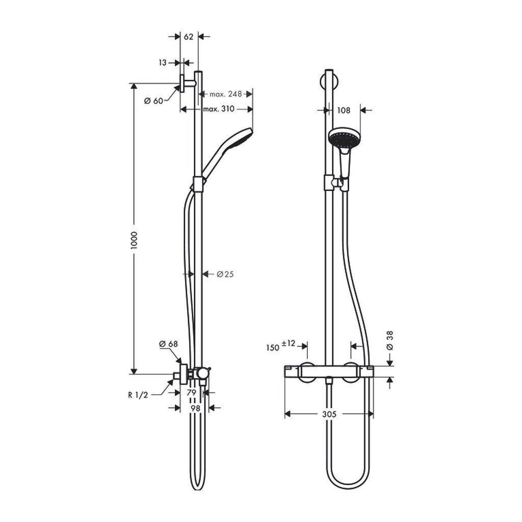 - A zuhanyrúd hossza: 1000 mm
