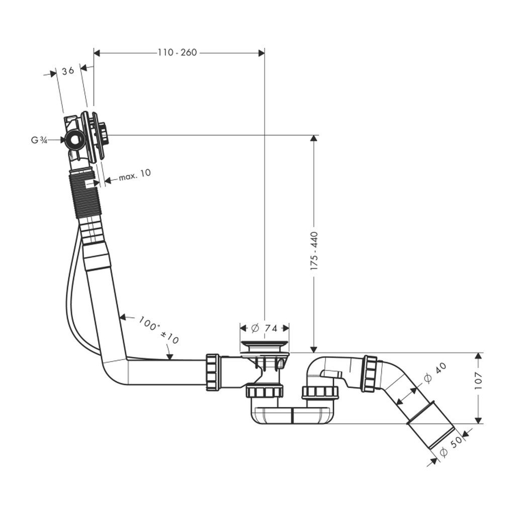 Hansgrohe Exafill, kád kifolyó lefolyóval és túlfolyó készlettel, HAN-58115180