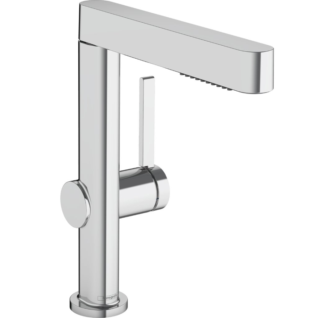 Ez a csaptelep is nagyon praktikus – grafit felületű, visszahúzható spray-vel van felszerelve, amely 500 mm hosszúságig kihúzható. Kétféle streamet kínál – lamináris és PowderRain –, amelyek között egy gomb megnyomásával válthatunk. A fúvóka automatikusan visszaáll az akkumulátor kikapcsolásakor. 248 mm-es magasságának és 212 mm-es nagyvonalú komfortzónájának (ComfortZone) köszönhetően ez a mosdócsaptelep mosdókagylókhoz vagy asztali mosdókagylókhoz is alkalmas. Az akkumulátor kimenet mérete 178 mm. 120°-os tartományban elforgathatja. A Hansgrohe Finoris lamináris áramlást kínál. A gazdaságos patronnak köszönhetően percenként mindössze 5 liter víz folyik át ezen az akkumulátoron. Ez akár 50%-kal kevesebb, mint a hagyományos energiatakarékos akkumulátoroknál. A mosdókagyló csaptelep ezen változata Push-Open zárható kimenettel van kialakítva. Alkalmas átfolyós vízmelegítőkhöz is.