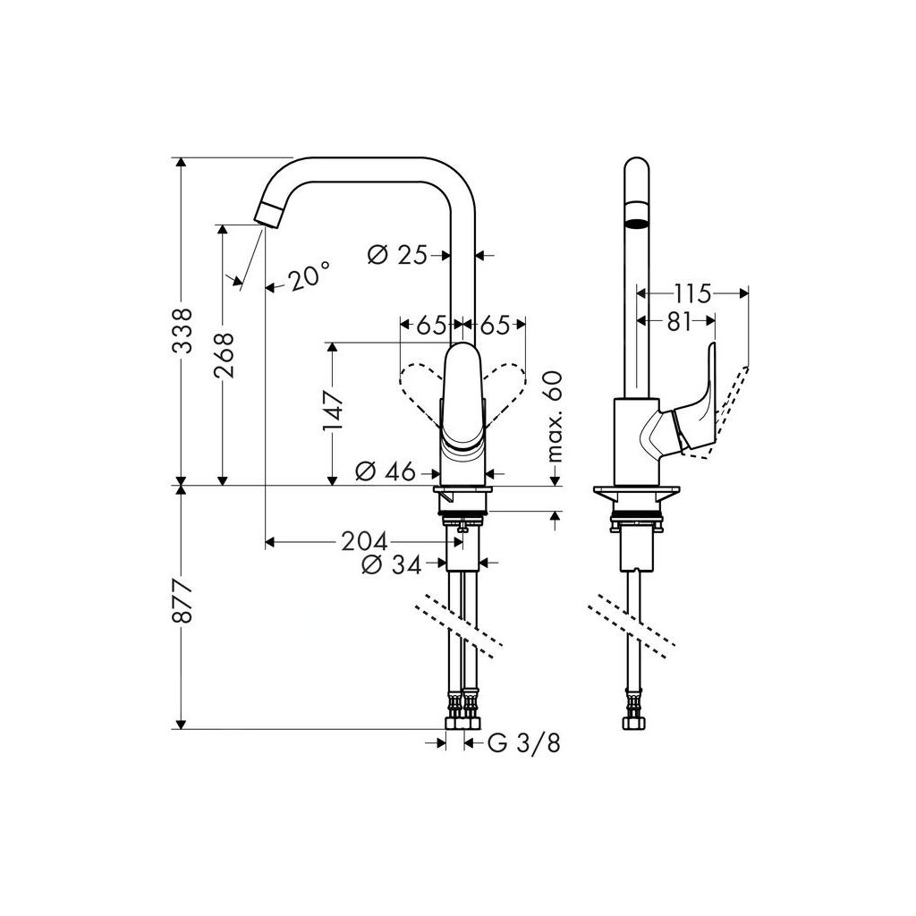 Válassza a hansgrohe Focus 260 rozsdamentes megjelenésű konyhai karos csaptelepet - modern és praktikus konyhai kisegítő, elegendő helyet biztosítva a mosogatónál!