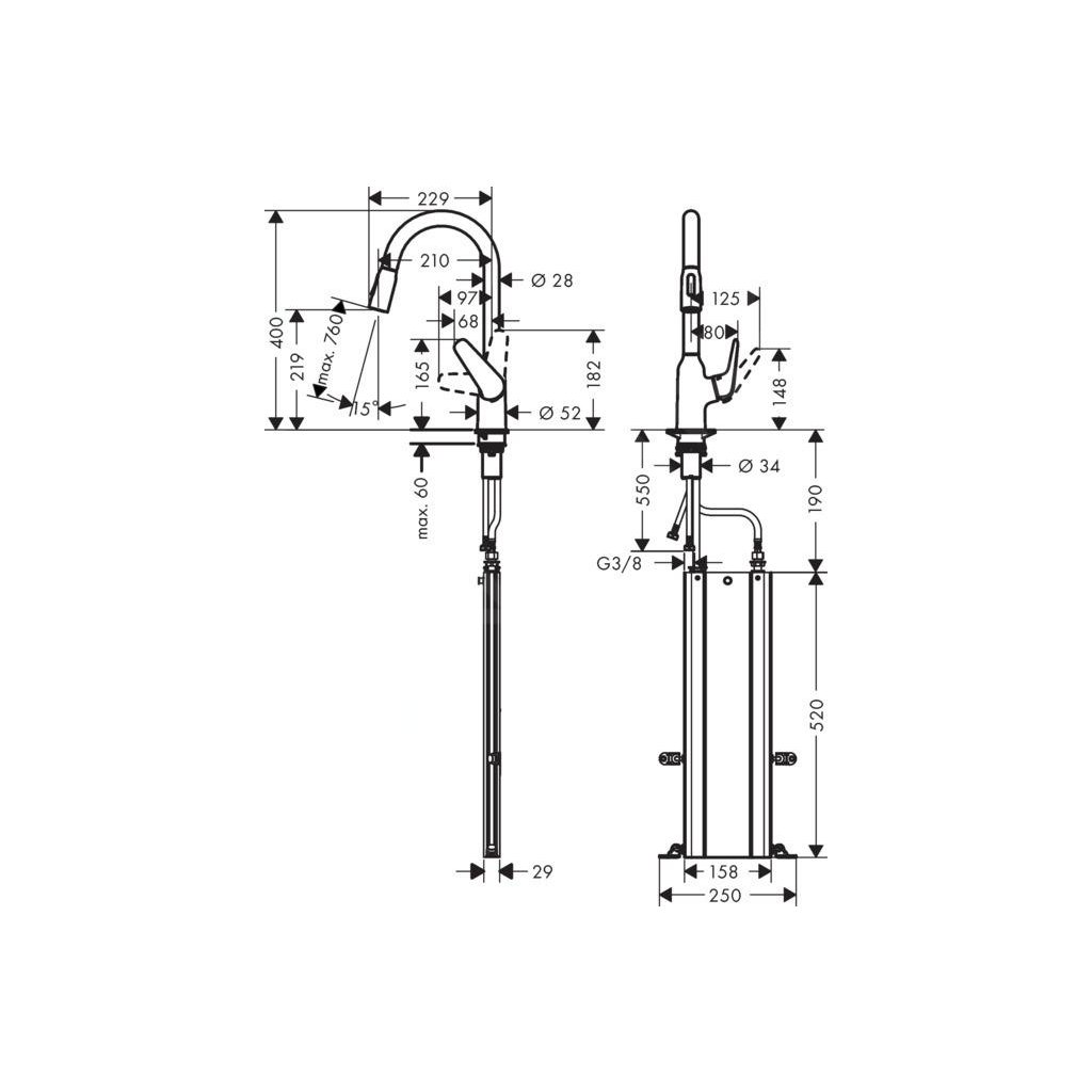 Hansgrohe Focus M42, M4216-H220 mosogatócsaptelep kihúzható spray-vel, rozsdamentes acél megjelenés, HAN-71820800